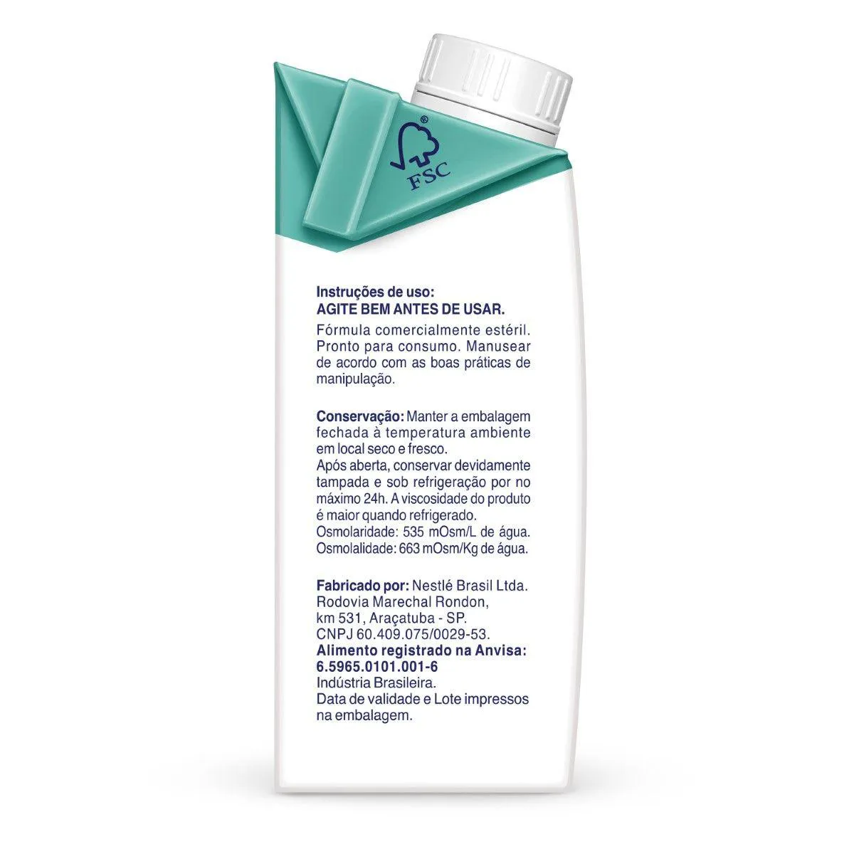 Fórmula enteral hiperproteica, com densidade energética alta, adicionado de arginina e prolina. Com alto teor de zinco, selênio, vitaminas A, E e C. Sem adição de sacarose.