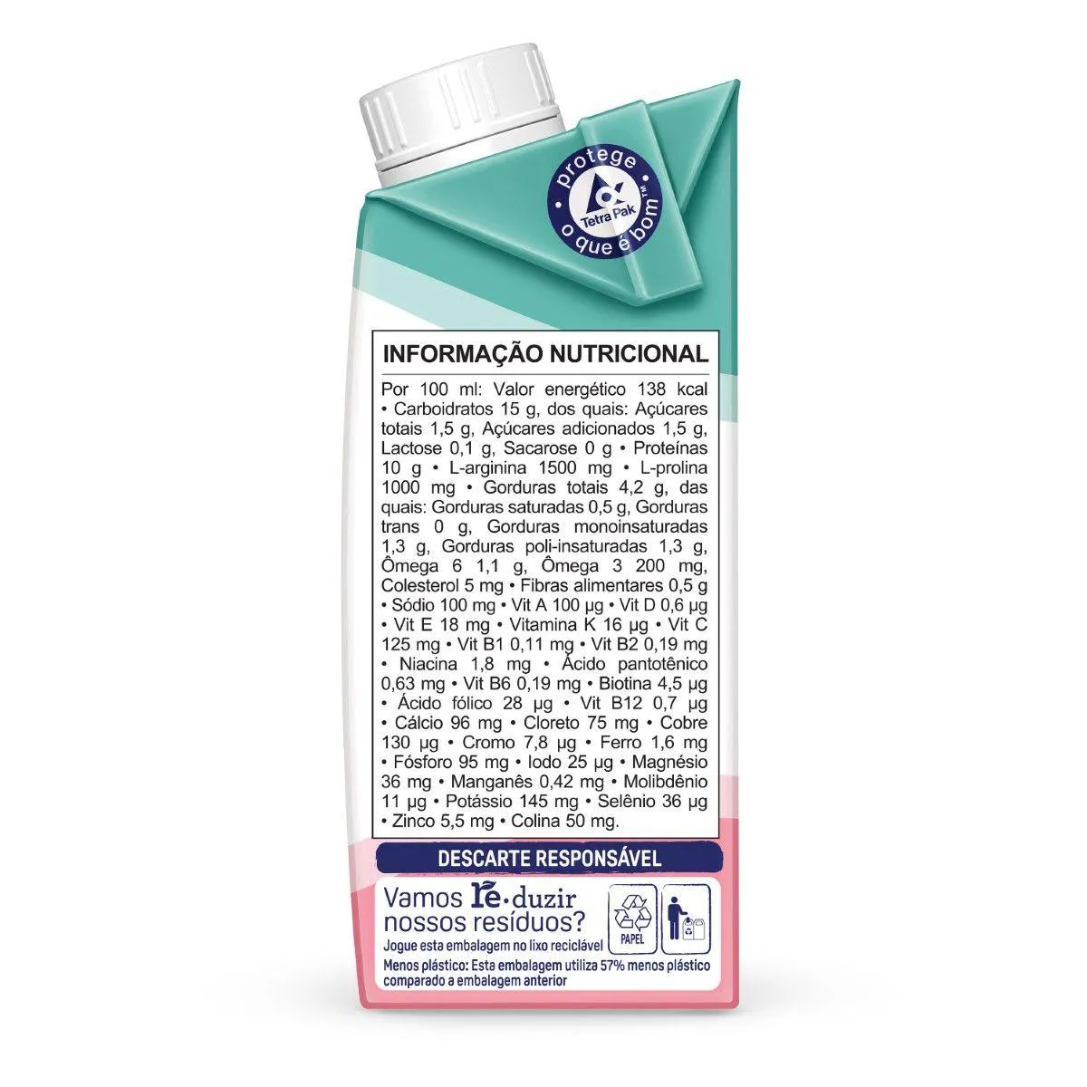 • Enriquecida com arginina e prolina.