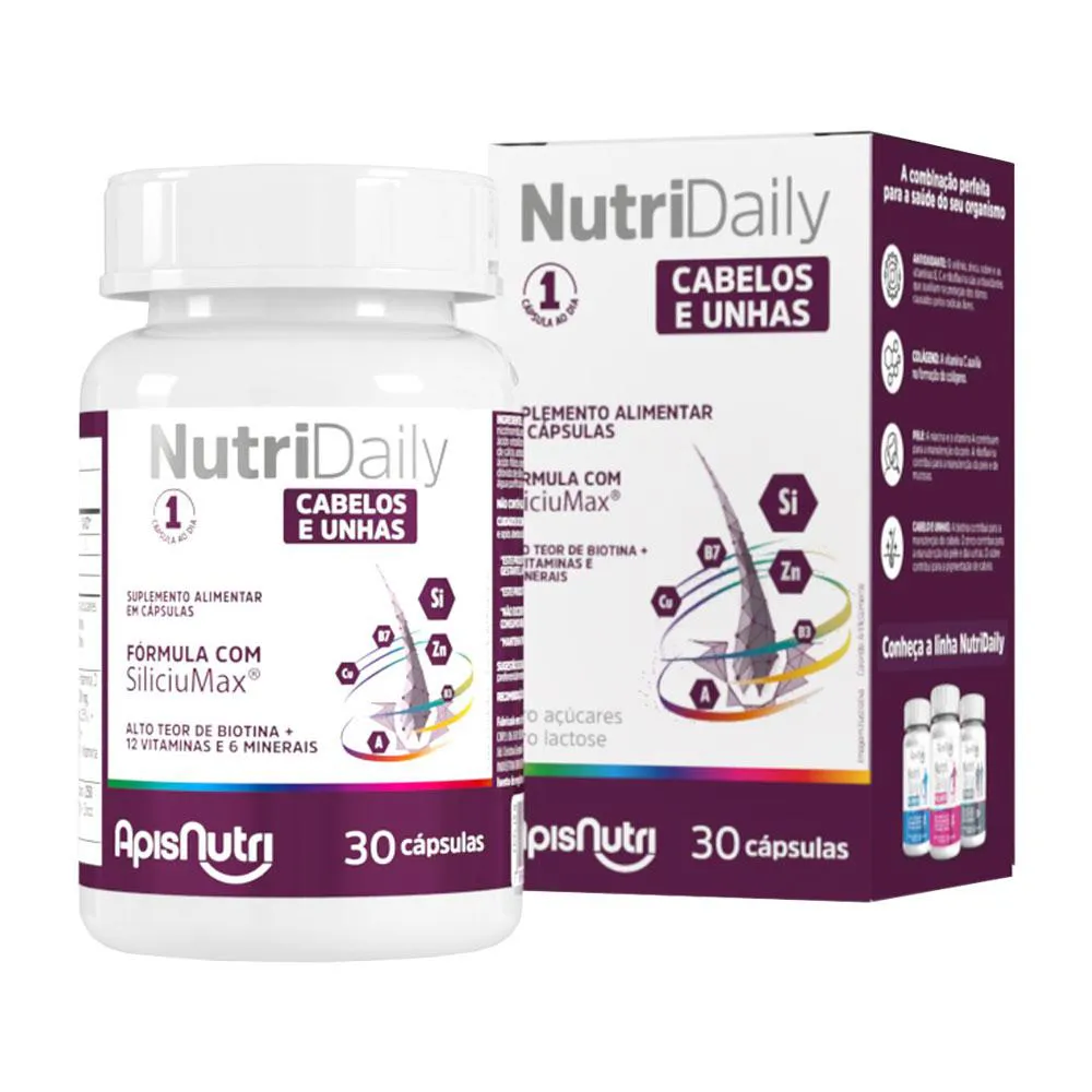 NutriDaily Cabelos Unhas Alto Teor de Biotina 700mg 30 Cápsulas Apisnutri
