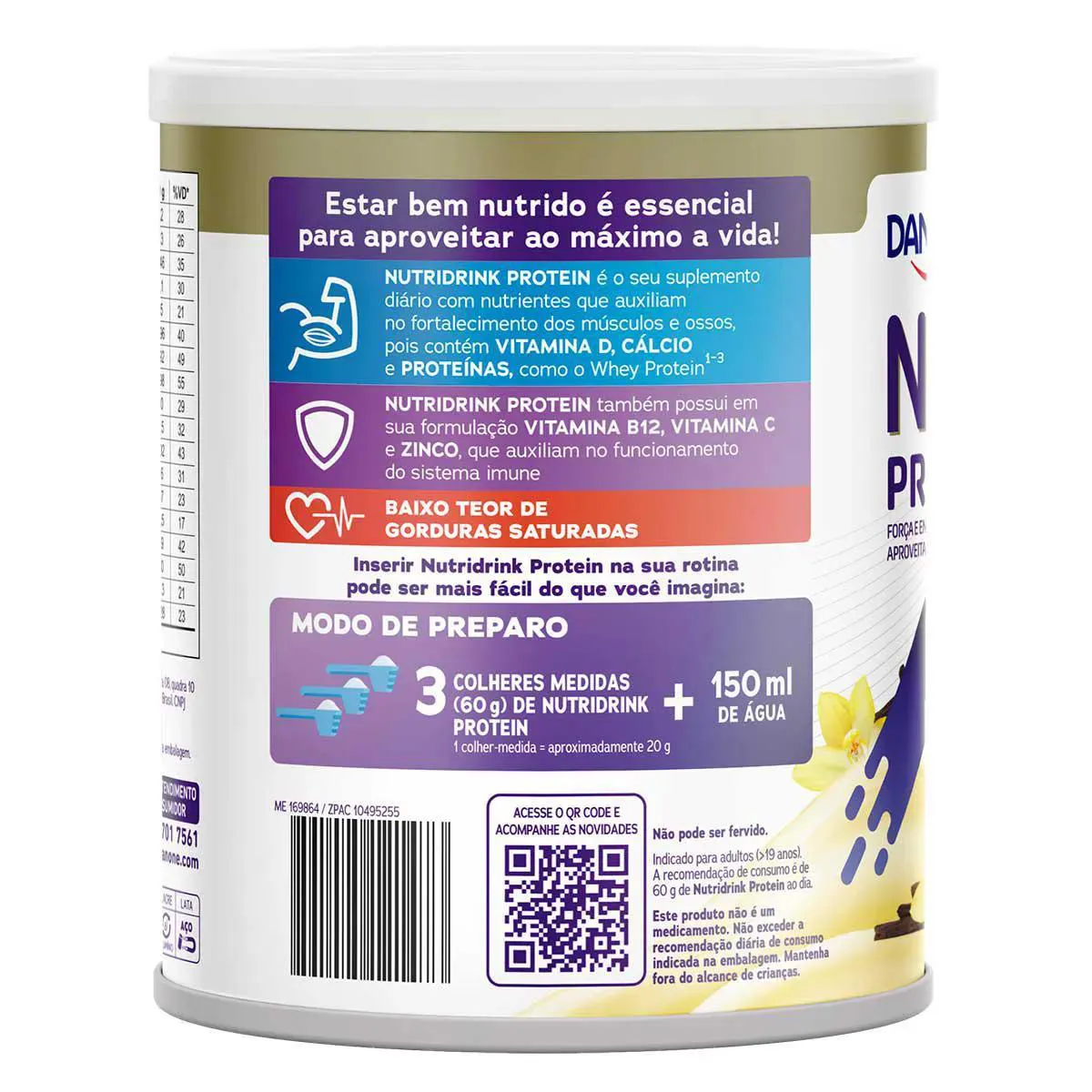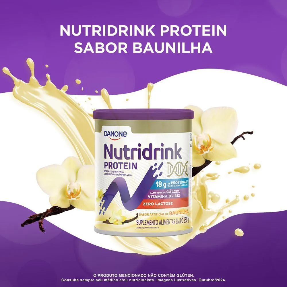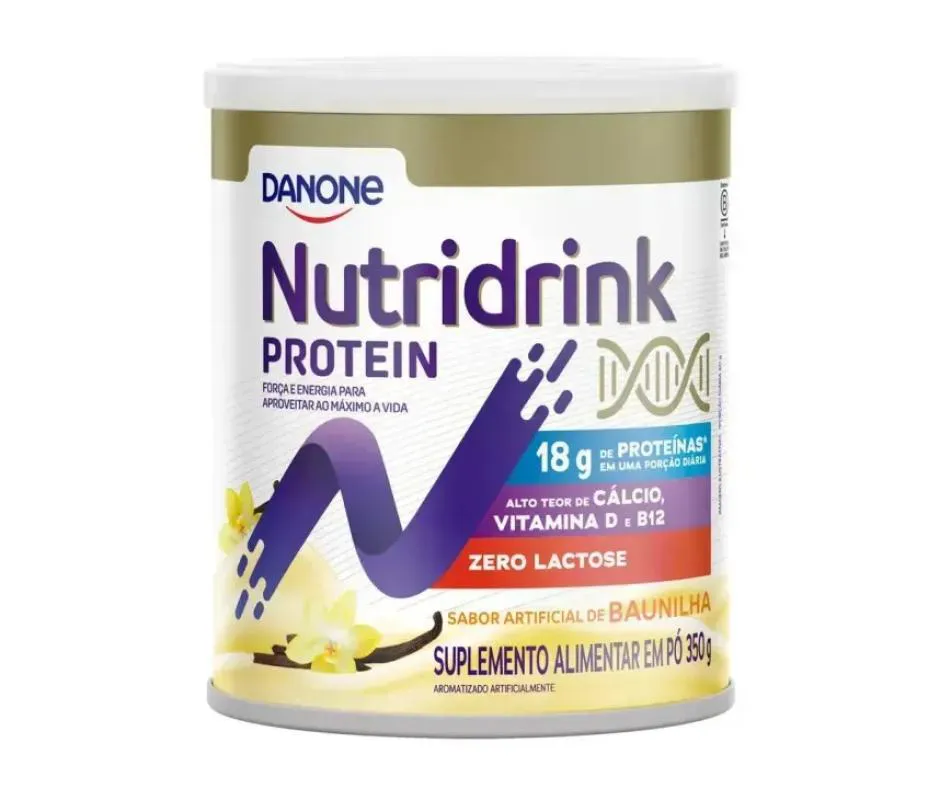 Nutridrink Protein Baunilha - Pote 350g é o seu suplemento com 18g de proteínas em uma única porção diária que atende 100% da recomendação diária de vitamina D. Nutrientes essenciais que contribuem para o amadurecimento ativo e saudável, com +disposição, +força e +imunidade. Tem baixo teor de gorduras saturadas a escolha leve e deliciosa para o seu dia. Zero lactose nas versões sem sabor (ideal para receitas doces e salgadas, em 350g e 700g) e sabor baunilha em 350g.