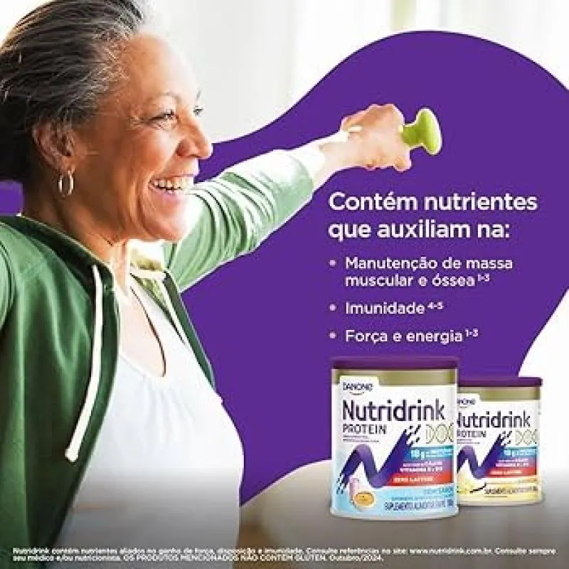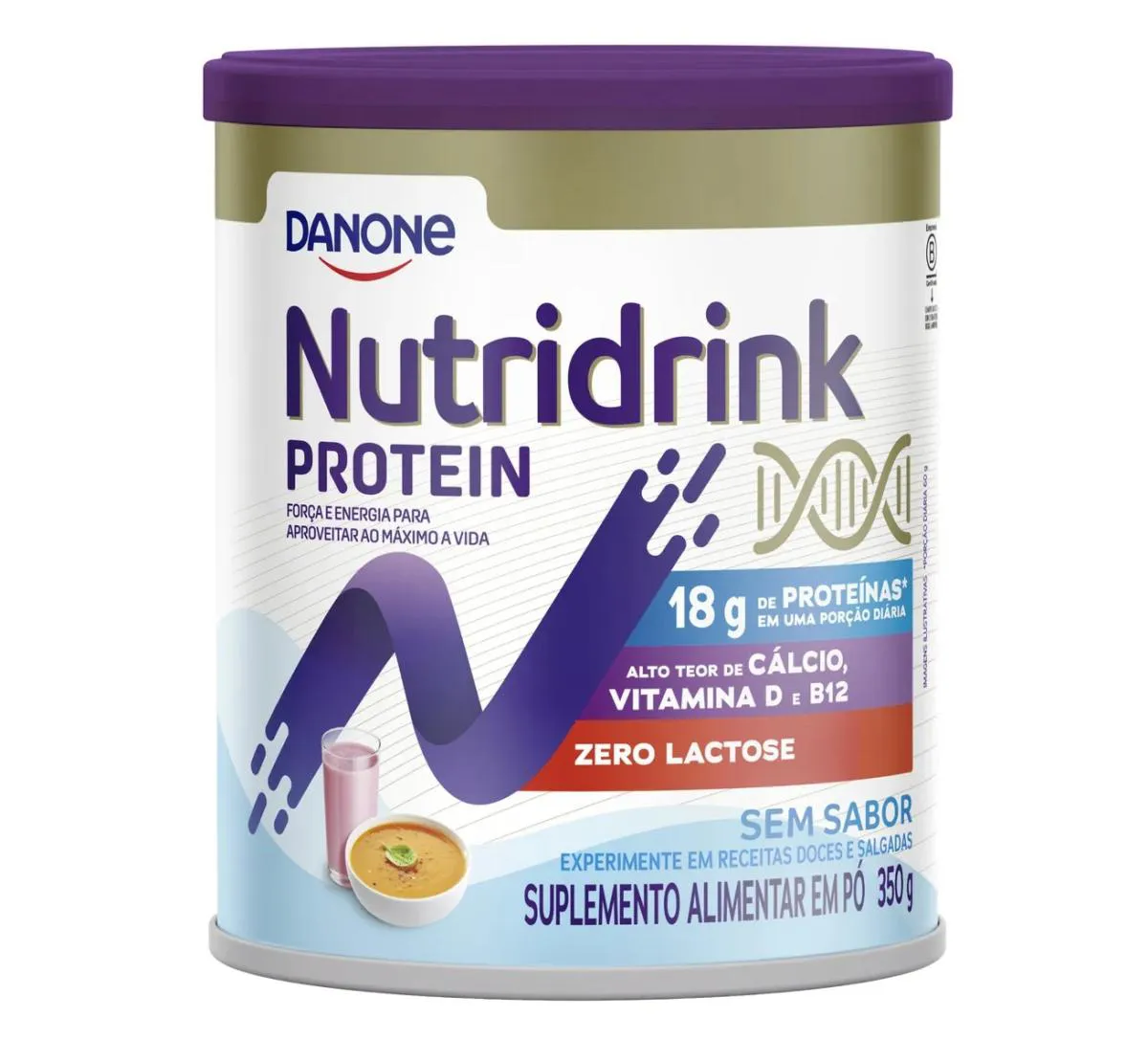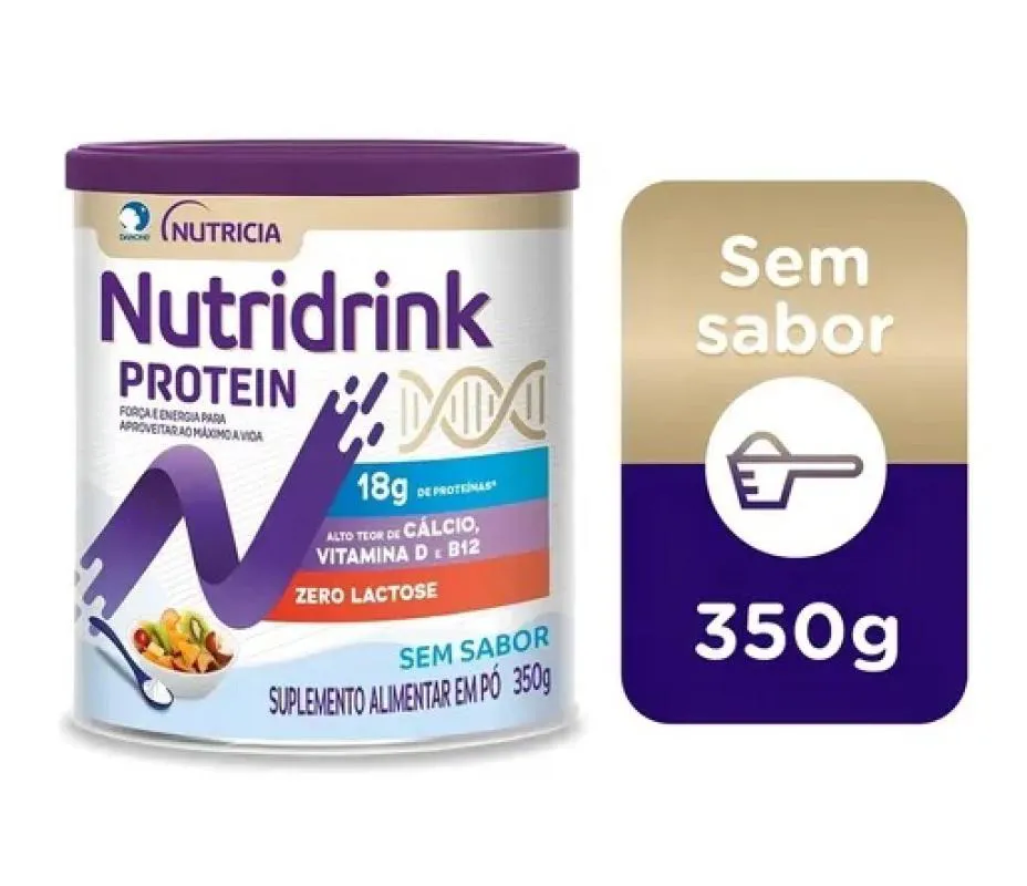 Nutridrink Protein é o seu suplemento com 18g de proteínas em uma única porção diária que atende 100% da recomendação diária de vitamina D. Nutrientes essenciais que contribuem para o amadurecimento ativo e saudável, com +disposição, +força e +imunidade. Tem baixo teor de gorduras saturadas a escolha leve e deliciosa para o seu dia. Zero lactose nas versões sem sabor (ideal para receitas doces e salgadas, em 350g e 700g) e sabor baunilha em 350g.