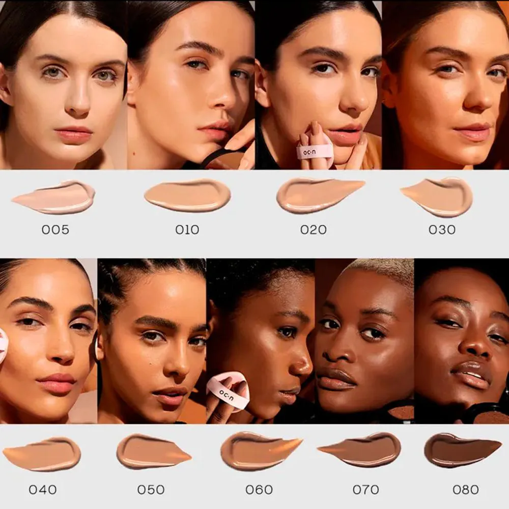 A Base Cushion Foundation Océane Edition 12g - . Sua fórmula vegana, com vitamina E, ácido hialurônico e extratos botânicos, nutre a pele enquanto uniformiza o tom. O formato cushion com esponja macia e espelho embutido garante aplicação sem desperdícios e retoques fáceis.