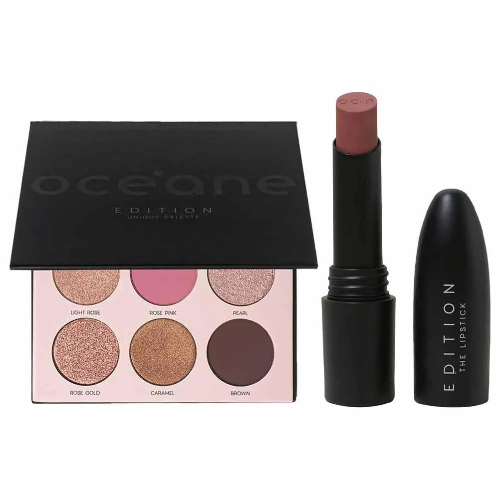 O Océane Edition traz dois produtos essenciais para uma maquiagem completa: a Unique Palette, uma paleta de sombras com nove tons cuidadosamente selecionados, sendo seis cintilantes e três matte, perfeitos para criar desde looks diurnos sutis até produções noturnas mais ousadas; e o Batom The Lipstick Edition Nude, que oferece acabamento semi-matte sofisticado, complementando sua make com um toque clássico. Este kit foi desenvolvido pensando na mulher moderna que busca praticidade sem abrir mão do glamour.