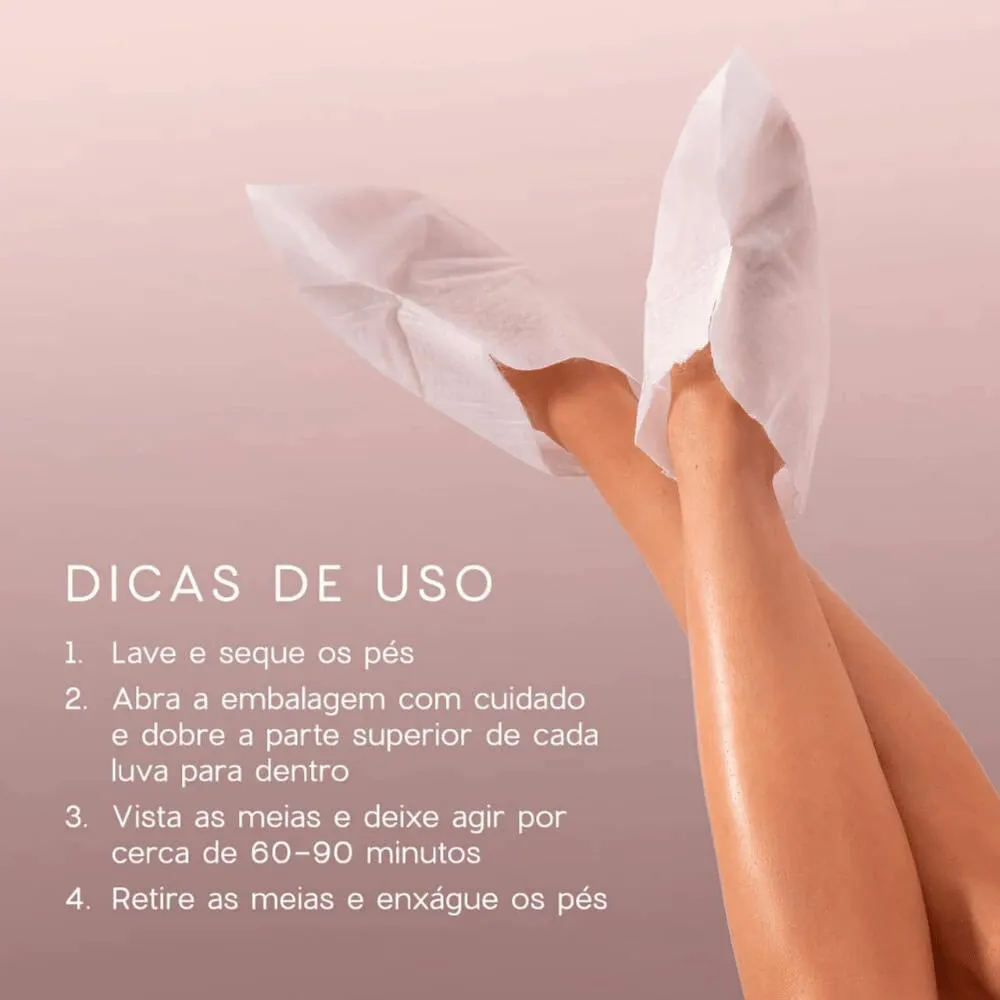 É muito simples: coloque as meias, relaxe por até 90 minutos e, alguns dias depois, observe os resultados. Os ativos promovem uma descamação suave que remove peles mortas, calos e asperezas incômodas ? tudo isso sem causar dor.