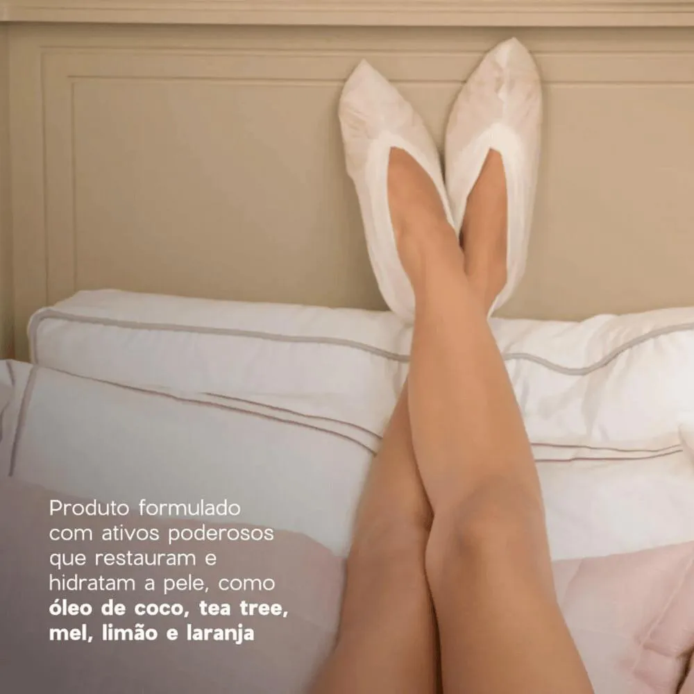 Máscara esfoliante para pés com óleo de coco ? Foot Peeling Mask (1 par). A fórmula potente, que combina óleo de coco, tea tree, mel, limão e laranja, elimina células mortas, hidrata profundamente e deixa os pés macios e renovados. Perfeita para quem busca praticidade e resultados de spa no dia a dia, garantindo conforto e cuidado completo em um único produto.