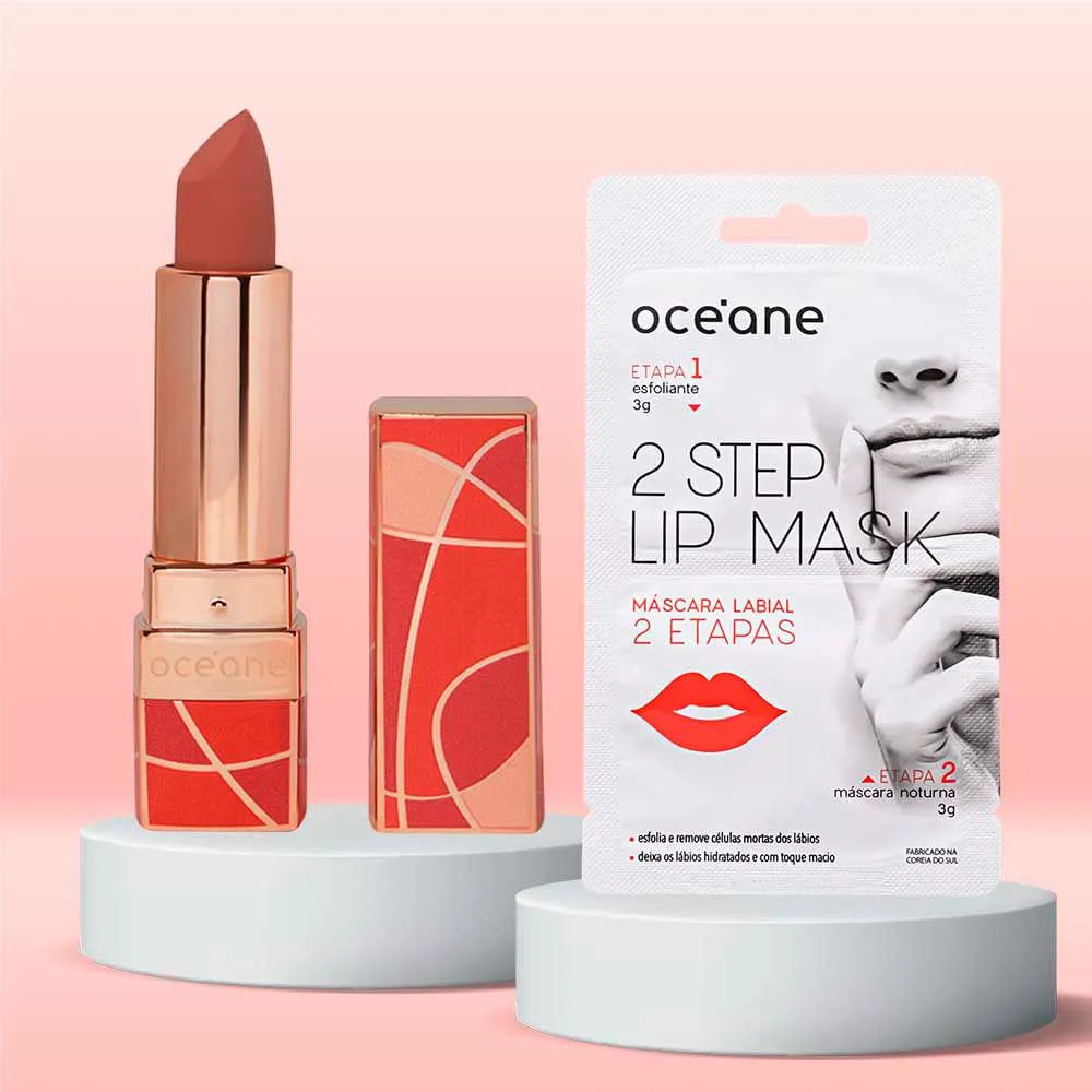 O Kit Océane - Batom Semi-Matte Capri Lipstick - Beloved Nude + Máscara Labial 2 Step é a combinação perfeita para quem deseja lábios hidratados e com cor deslumbrante. Este kit traz dois produtos essenciais: um batom semi-matte de alta pigmentação e uma máscara labial que proporciona cuidados intensivos em duas etapas.