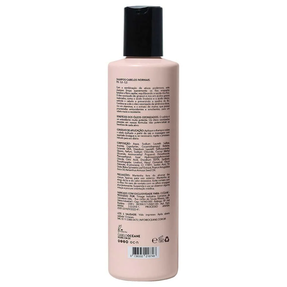 O shampoo para Cabelos Normais limpa suavemente os fios enquanto fortalece a fibra capilar, equilibrando a saúde dos fios. Possui óleo ozonizado de girassol e óleo ozonizado de amêndoas doce.