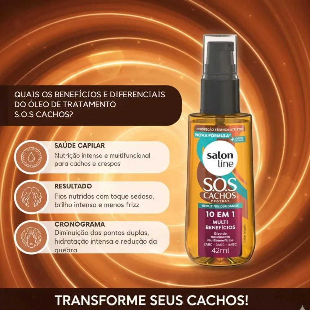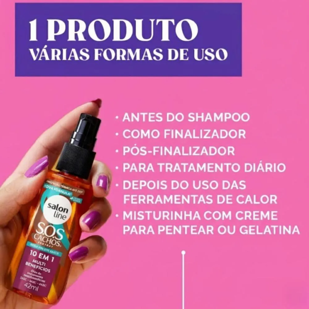 - Controle de frizz e volume para cabelos cacheados.