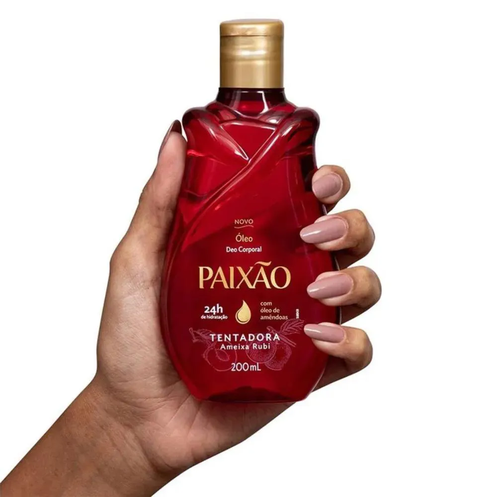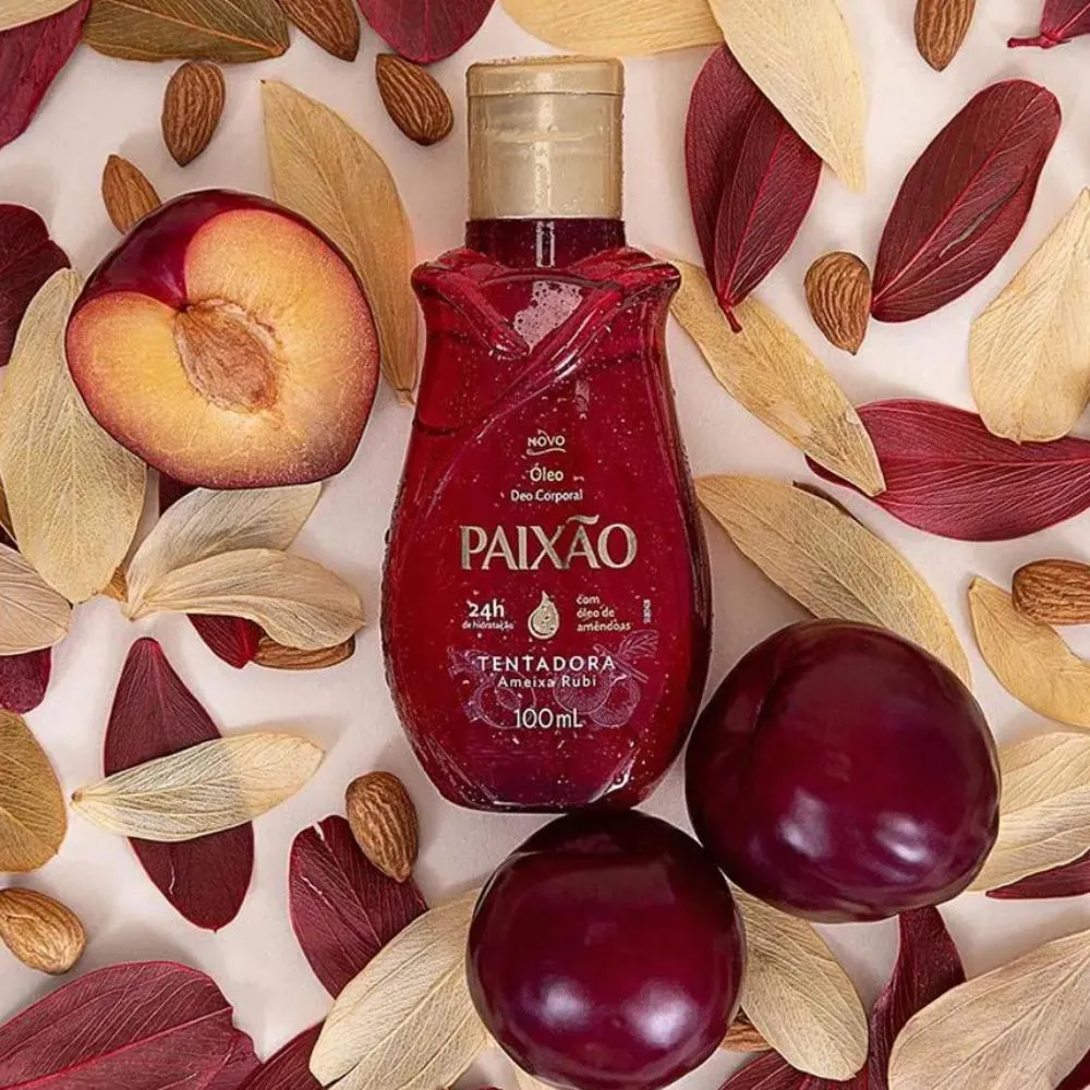 Em tamanho maior, que estende ainda mais a sua incrível experiência, o Óleo Corporal de Amêndoas Paixão Tentadora com ação desodorante foi desenvolvido com notas de frutas vermelhas para mulheres que desejam despertar a magia através do toque. Nossa pele sofre danos diariamente, seja por conta do ar, da temperatura ou das roupas que usamos. Até mesmo a temperatura da água pode ser responsável por remover a nossa camada natural de proteção, deixando a nossa pele extremamente sensível e necessitada de produtos que auxiliem nessa reposição. Os Óleos Corporais Paixão são responsáveis por trazer uma hidratação profunda, capaz de tratar até mesmo peles extrassecas. Para uma pele macia, rejuvenescida, e completamente hidratada, use Óleo de Amêndoas Paixão Tentadora.