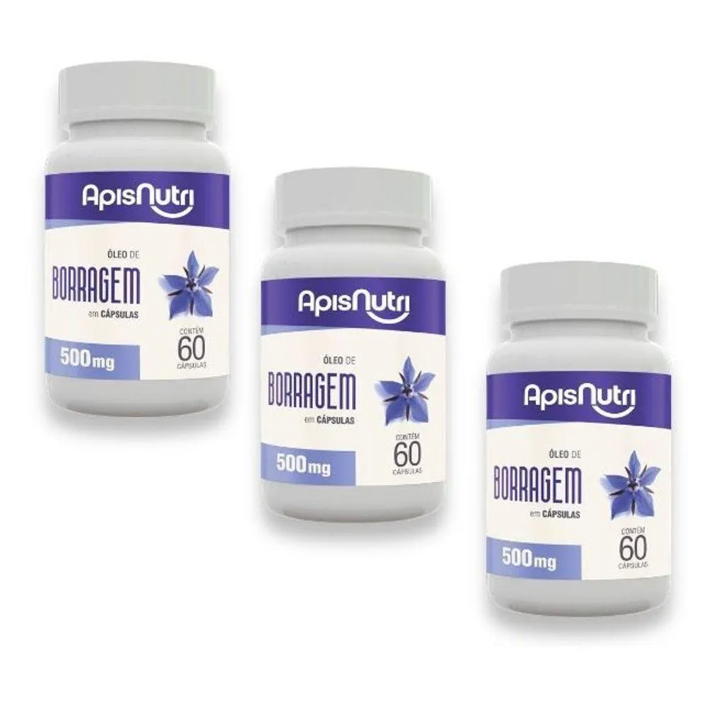 ÓLEO DE BORRAGEM 500mg (60 caps) - APISNUTRI O Óleo de Borragem da Apisnutri é obtido através da planta Borago officialis. Esta planta herbácea anual é mediterrânea, seu cultivo é utilizado principalmente para a produção de sementes, além de ser utilizada como legume. As partes da planta utilizada para obtenção de óleo são as flores, o caule, as folhas e as sementes. O óleo extraído da semente da borragem possui finalidade de complementar a ingestão diária de ácidos graxos essenciais, contribuindo para o bom funcionamento do organismo. Pode ser utilizado por longos períodos, porém é recomendado evitar ultrapassar as doses recomendadas, pois pode ter efeito tóxico em doses muito elevadas. BENEFÍCIOS * Possui propriedades anti-inflamatórias;* Auxilia na redução dos níveis de colesterol;* Ajuda nos sintomas pré-menstrual;* Auxilia na dilatação dos vasos sanguíneos. Embalagem disponível: frasco contendo 60 cápsulas.