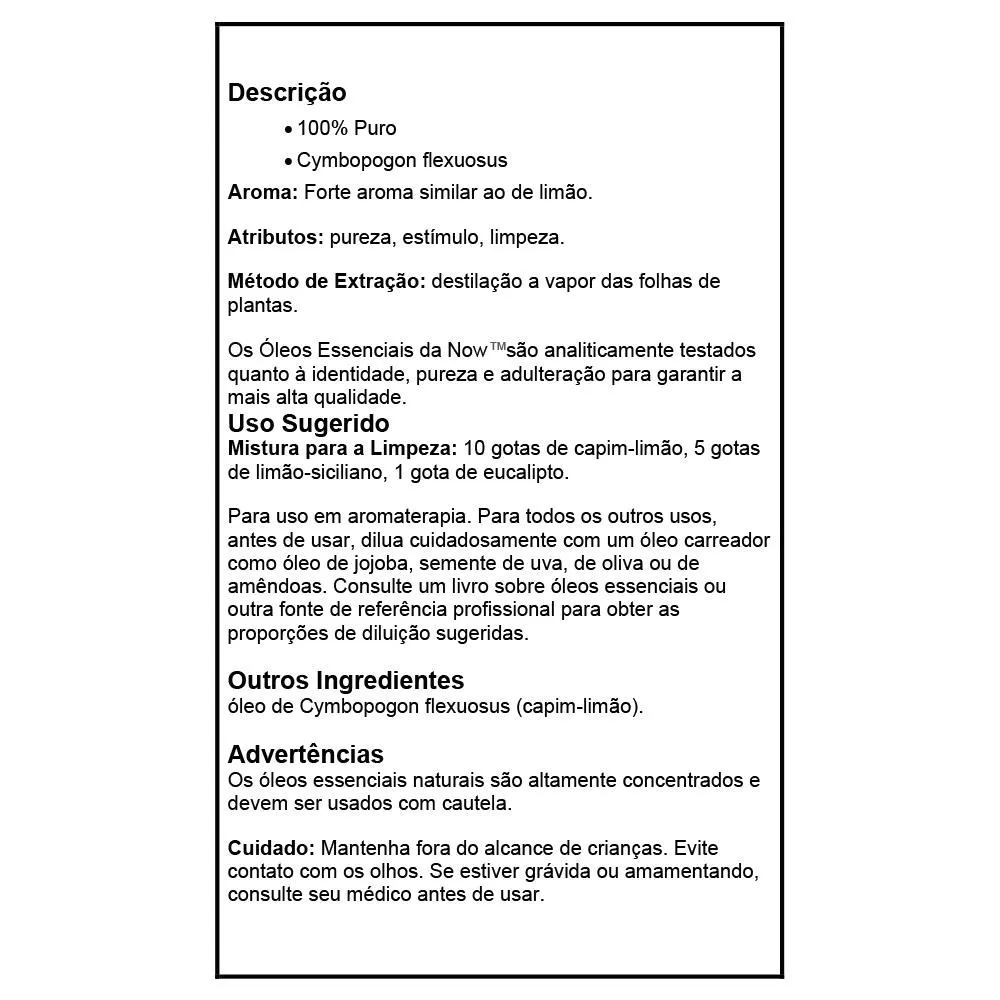 O que é e para que serve o Óleo De Capim Limão 30Ml Now Foods Lemongrass Oil Puro Fragrância Refrescante aromaterapia Difusores - No Brasil?
