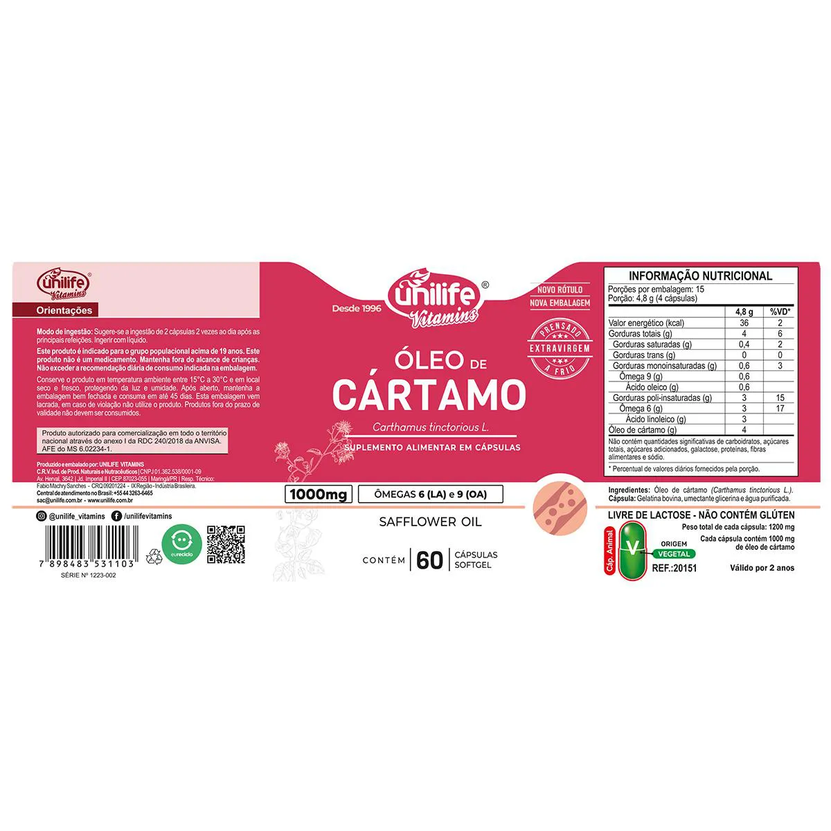 O que é o óleo de Cártamo 1200mg da Unilife?