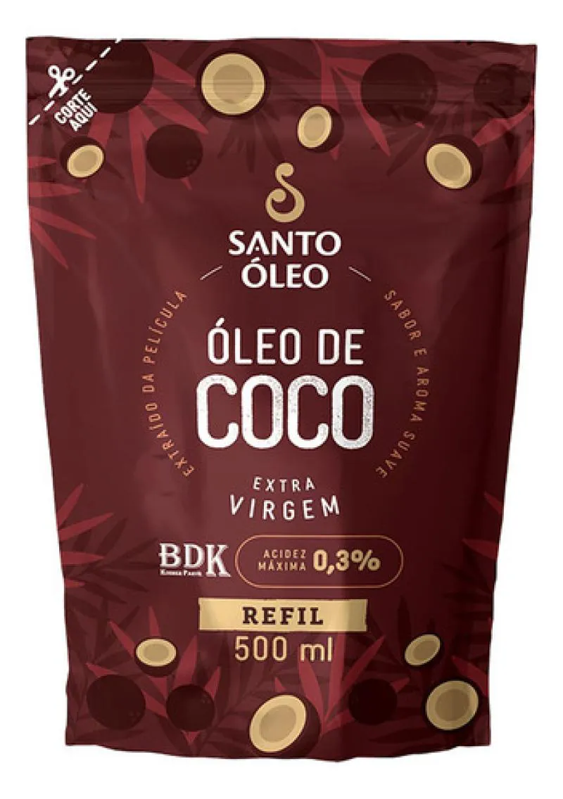 O Óleo de Coco Extravirgem de Película Refil 500 ml, da Santo Óleo, é obtido por prensagem a frio da película marrom que reveste o coco ao invés da polpa branca resultando em um óleo com sabor e aroma mais suaves. Sua acidez é baixíssima (até 0,3%) e possui alto teor de ácido oleico (ômega-9), oferecendo leveza e versatilidade para uso culinário e cosmético. Esta versão refill proporciona economia e menor impacto ambiental, mantendo todas as características originais do produto, porém em embalagem prática.