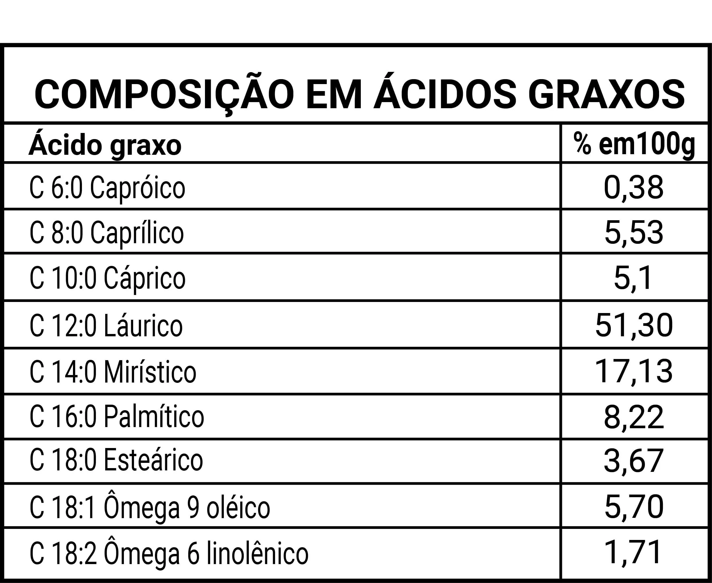 Ingrediente Único: Óleo de coco (Cocos nucifera L.)