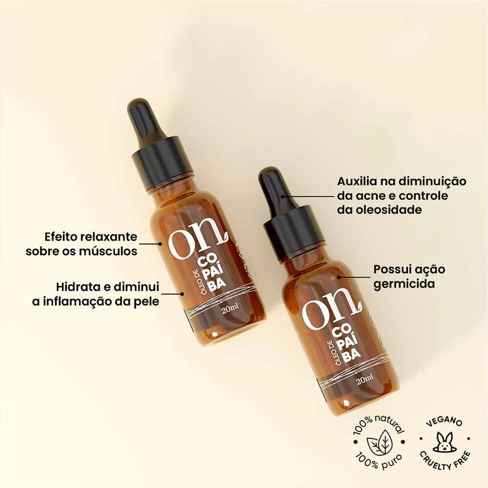 O Óleo de Copaíba ON é um produto 100% puro e natural, formulado com os melhores ativos da natureza, como o ácido copálico, alfa-copaeno e beta-cariofileno.