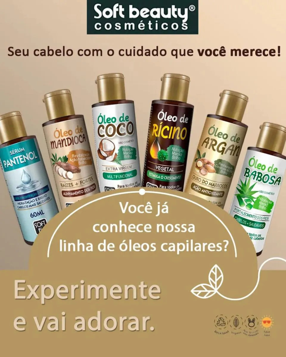 O Óleo de Mandioca Soft Fix Hair proporciona revitalização, brilho e fortalecimento dos fios além de auxiliar no crescimento do cabelo e alinhamento das cutículas.