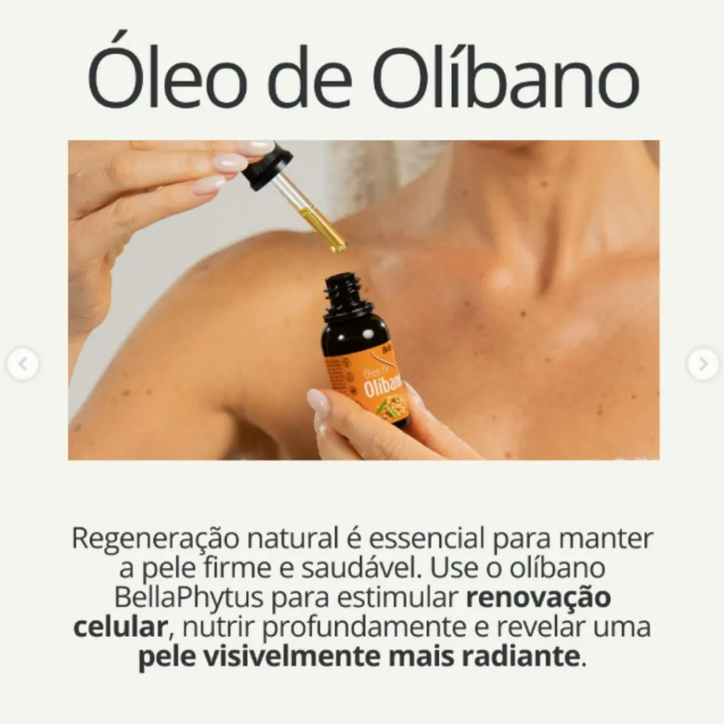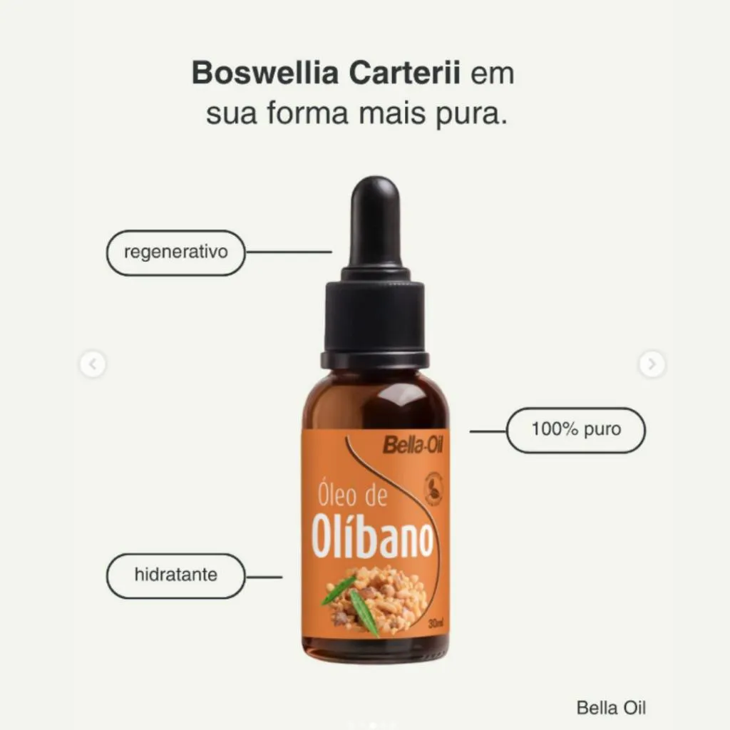 O BellaOil - Óleo de Olíbano 30ml BellaPhytus é um óleo vegetal 100% puro obtido da resina da Boswellia Carterii. Na pele, proporciona hidratação e nutrição. Nos cabelos, pode ser aplicado para cuidados capilares, conferindo maciez aos fios.