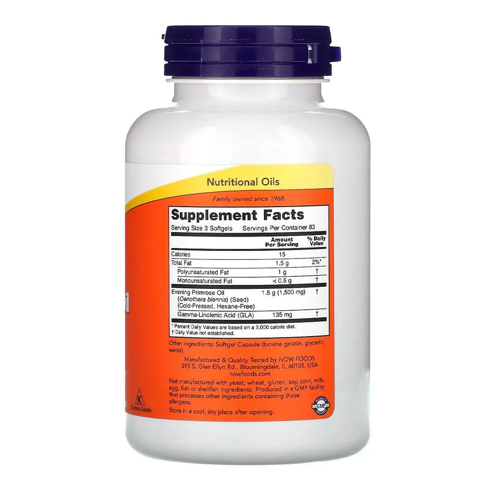 Óleo de Prímula 500Mg Now Foods 250 Softgels Importado.