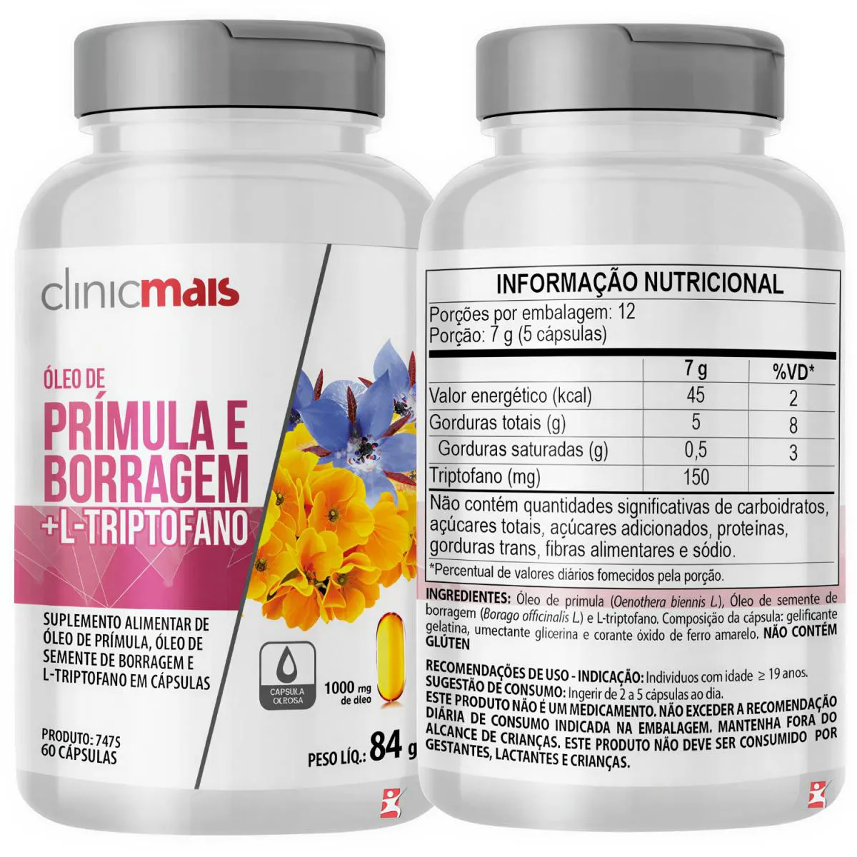 Óleo de Prímula e Borragem + L-Triptofano 1000Mg Saúde da Mulher 60 Capsulas - Clinicmais