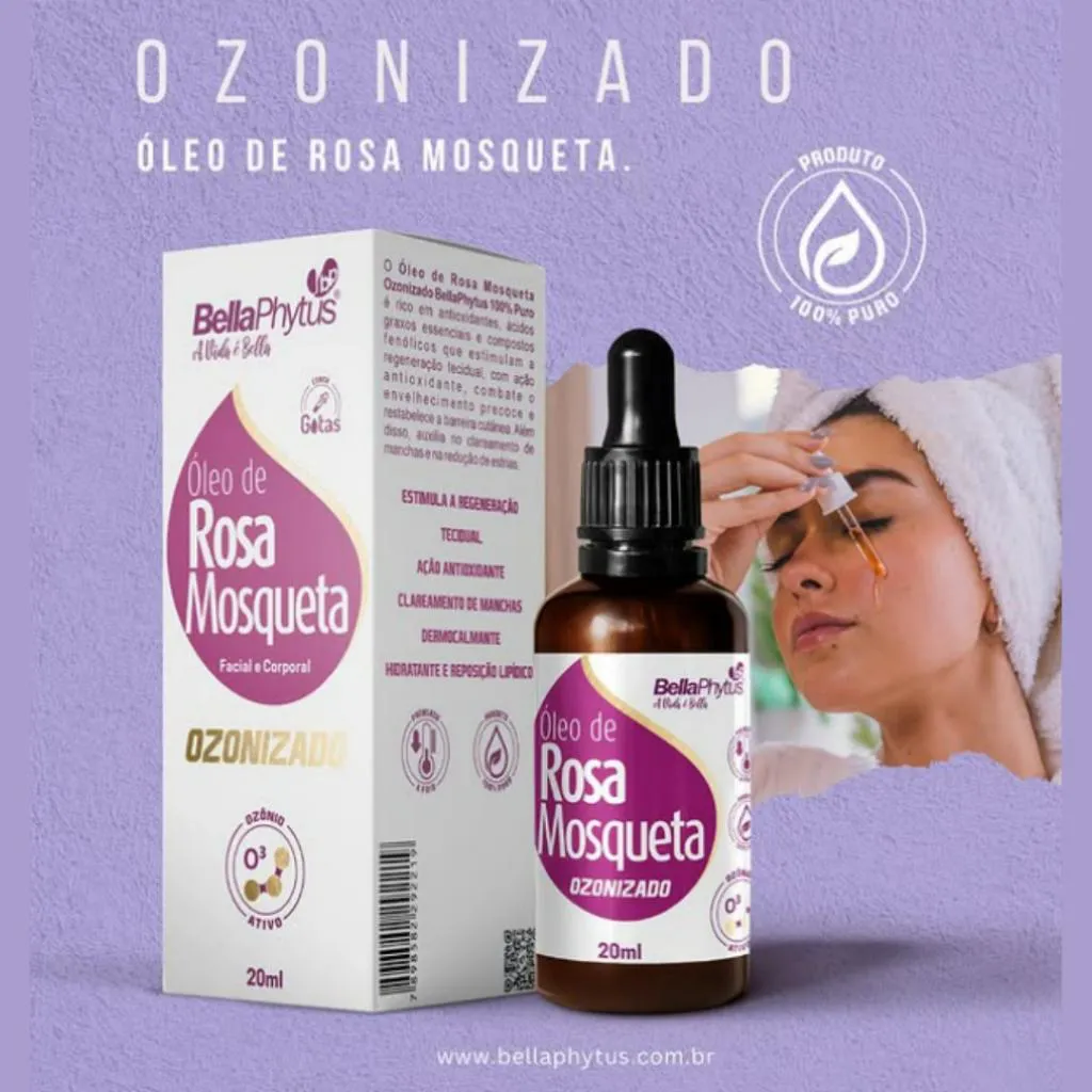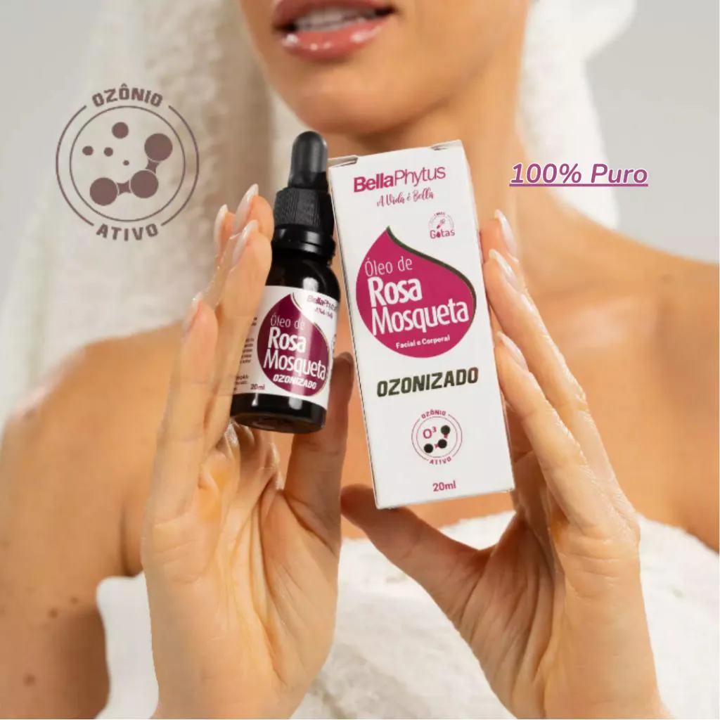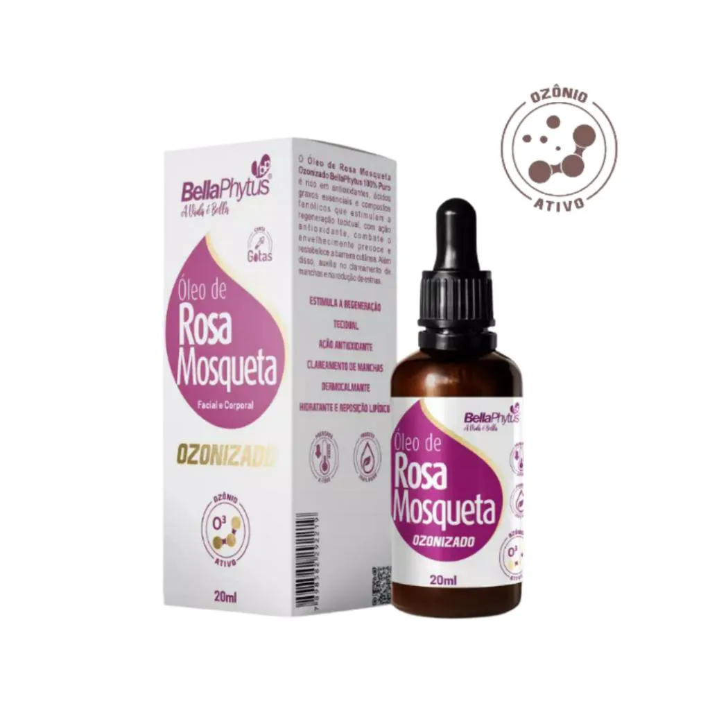 O Óleo de Rosa Mosqueta Ozonizado BellaPhytus 100% Puro da rosa selvagem é rico em antioxidantes, ácidos graxos essenciais e compostos fenólicos que estimulam a regeneração tecidual, com ação antioxidante, combate o envelhecimento precoce e restabelece a barreira cutânea. Além disso, auxilia no clareamento de manchas e na redução de estrias.