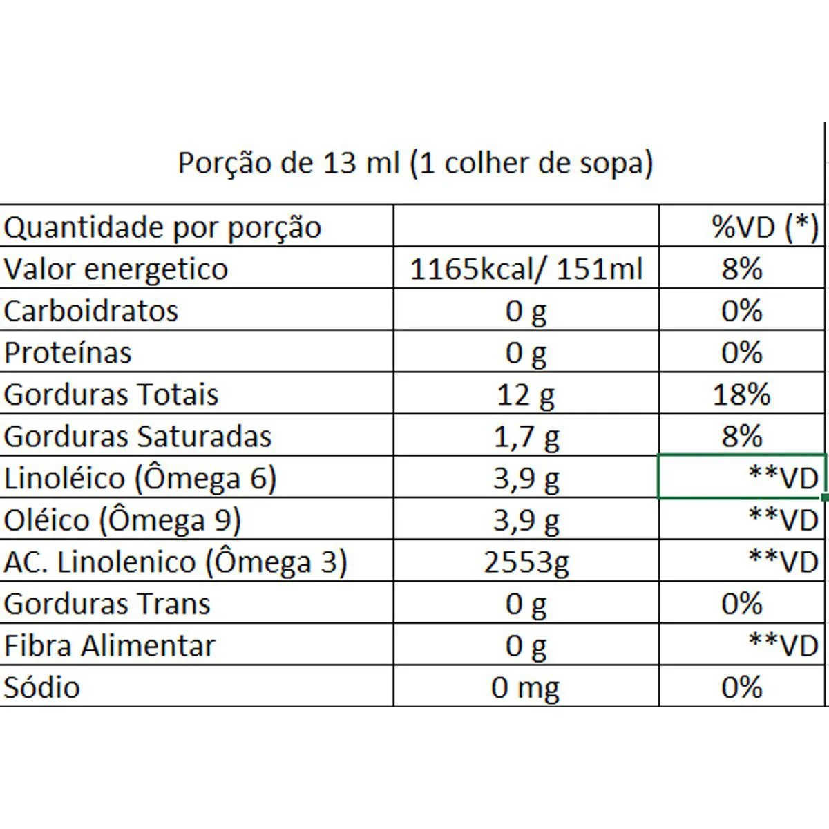 Um óleo misto único no mercado, com grande poder nutricional, unindo dois dos mais poderosos óleos, sendo fonte de Ômegas 3, 6 e 9.
