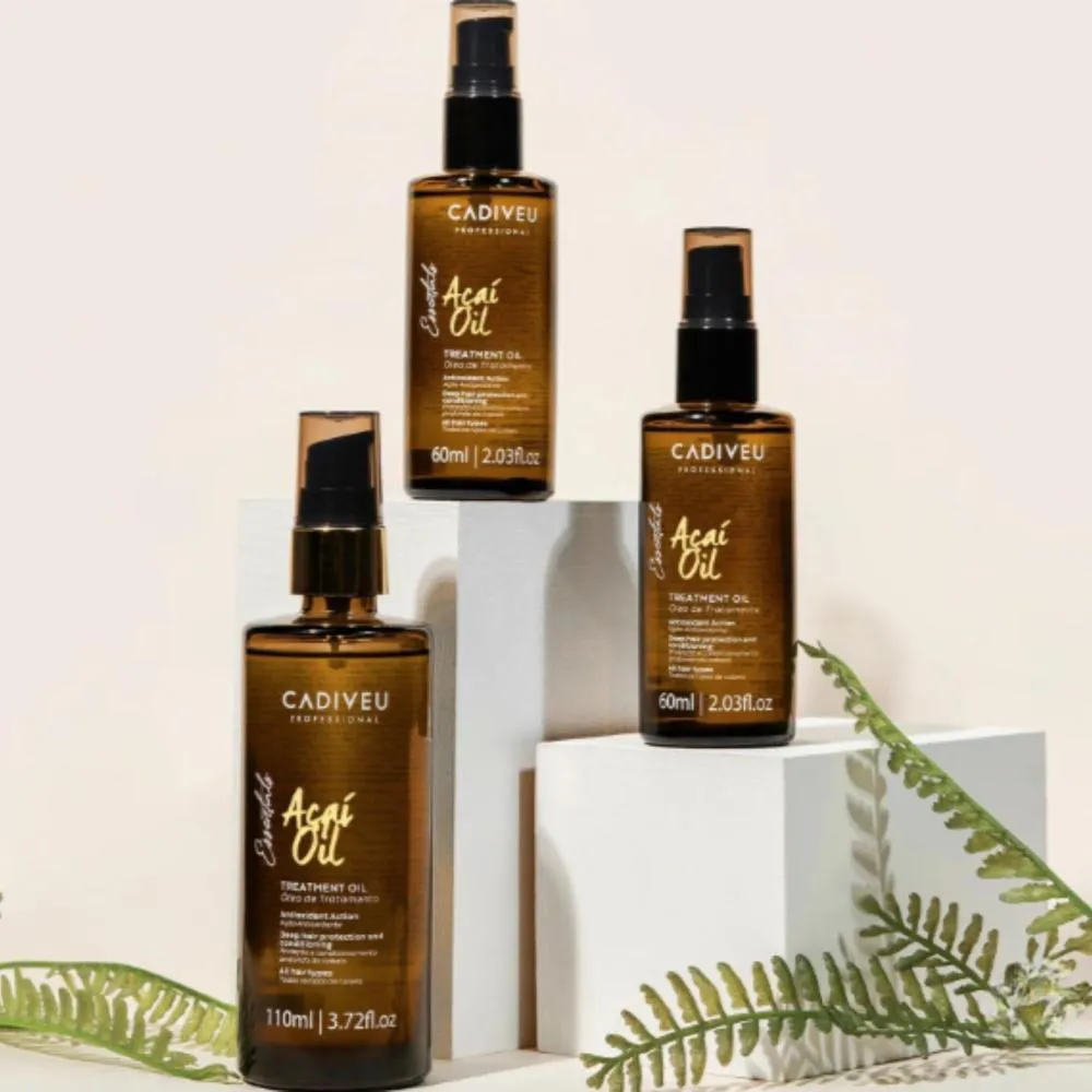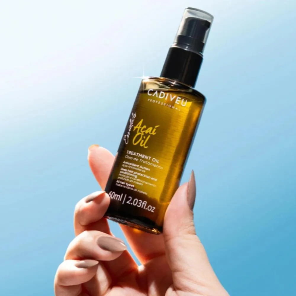 O óleo de tratamento Açaí Oil da Cadiveu é um elixir nutritivo projetado para restaurar a vitalidade dos fios, controlar o frizz e proporcionar um brilho intenso e duradouro. Sua fórmula combina óleo de açaí (rico em antioxidantes, fitoesteróis e vitaminas) com colágeno marinho, resultando em uma nutrição profunda que fortalece a fibra capilar, sela as pontas duplas e protege contra os danos causados por radicais livres e exposição solar.Graças à sua textura leve e de rápida absorção, o óleo desliza facilmente nos fios, seja em cabelo úmido ou seco, sem deixar resíduos pesados. Ele pode ser usado antes da escova para proteção térmica, após procedimentos químicos ou como finalizador para selar e disciplinar os fios. Perfeito para quem busca um tratamento luxuoso com ação reparadora e antioxidante.Fios nutridos, mais resistentes, com brilho radiante, frizz controlado e aparência saudável, protegidos contra os danos causados por calor e agressões externas.