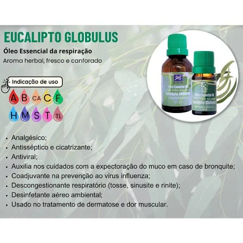 - Melhoria do Humor: O eucalipto globulus também é associado a benefícios emocionais, proporcionando uma sensação de frescor e clareza mental.