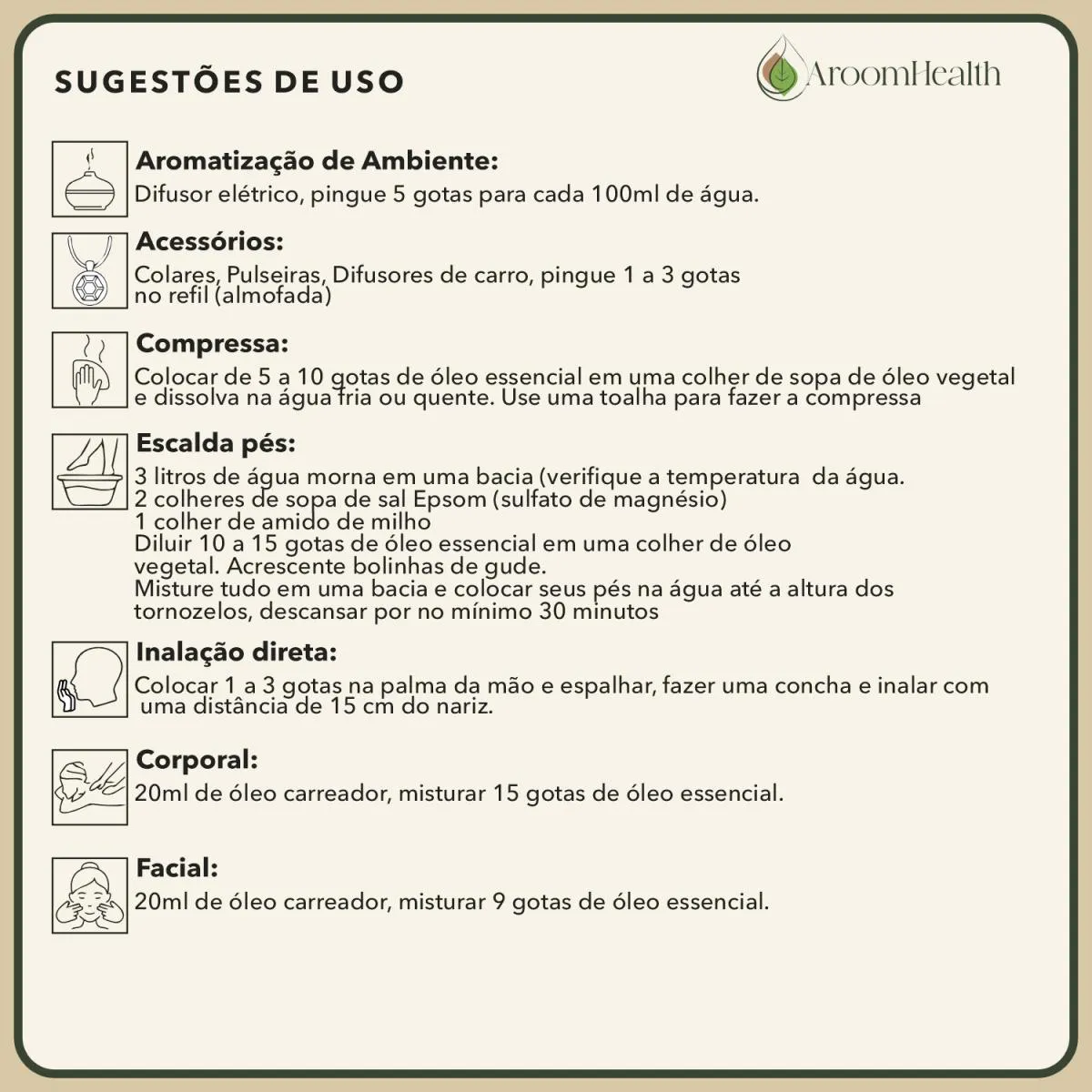Proporciona ação refrescante e analgésica natural. Auxilia no alívio de dores musculares, tensões e desconfortos. Descongestionante natural, favorece a respiração livre e profunda. Estimula a clareza mental, foco e disposição.