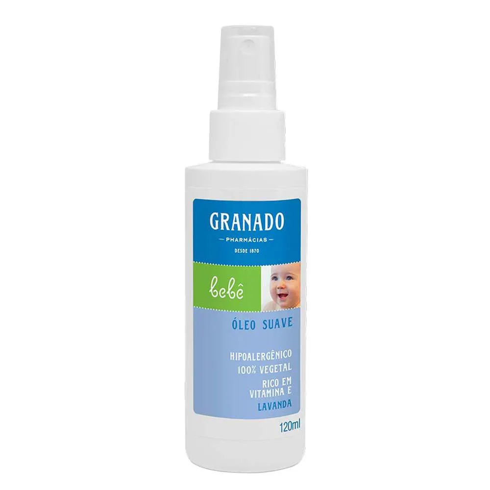 O Óleo Suave Bebê de Granado foi formulado com óleos vegetais e vitamina e. Especialmente desenvolvido para a pele delicada do bebê. Dermatologicamente testado. Livre de conservantes, corantes, óleo mineral e ingredientes de origem animal.