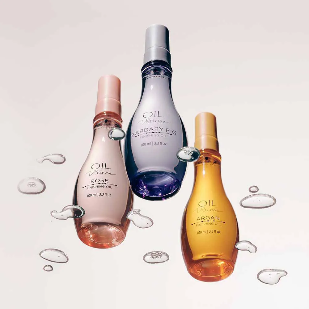 1- Aplique uma pequena quantidade do Óleo Rosas Schwarzkopf Professional Oil Ultime nas palmas das mãos e distribua uniformemente nos cabelos úmidos ou secos, concentrando-se nas pontas. Não enxágue. Modele como desejar.