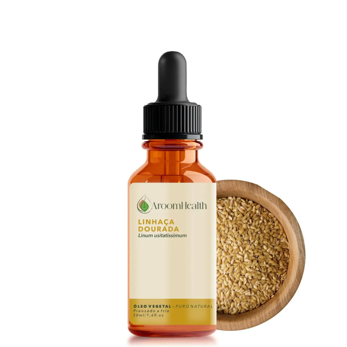 Óleo Vegetal Puro Natural de Linhaça Dourada – 30 ml | AroomHealth Nome botânico: Linum usitatissimum