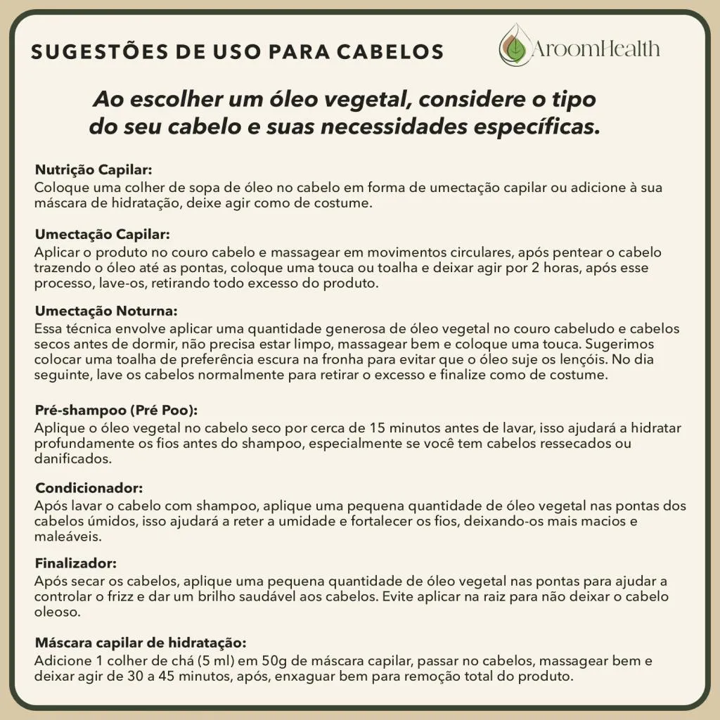 Produto vegano – Não testado em animais Vidro âmbar com conta-gotas, tampa lacre e validade de 2 anos (verifique no rótulo). Óleos vegetais são gorduras extraídas das plantas, desodorizados e com aroma semelhante ao de um óleo comum. O óleo vegetal de Mirra possui textura rica e ação profundamente regeneradora, sendo tradicionalmente utilizado para cuidados da pele, fortalecimento capilar e rituais terapêuticos ancestrais. Restaure e fortaleça: o poder do óleo vegetal de Mirra para cabelo e pele. BENEFÍCIOS PARA O CABELO