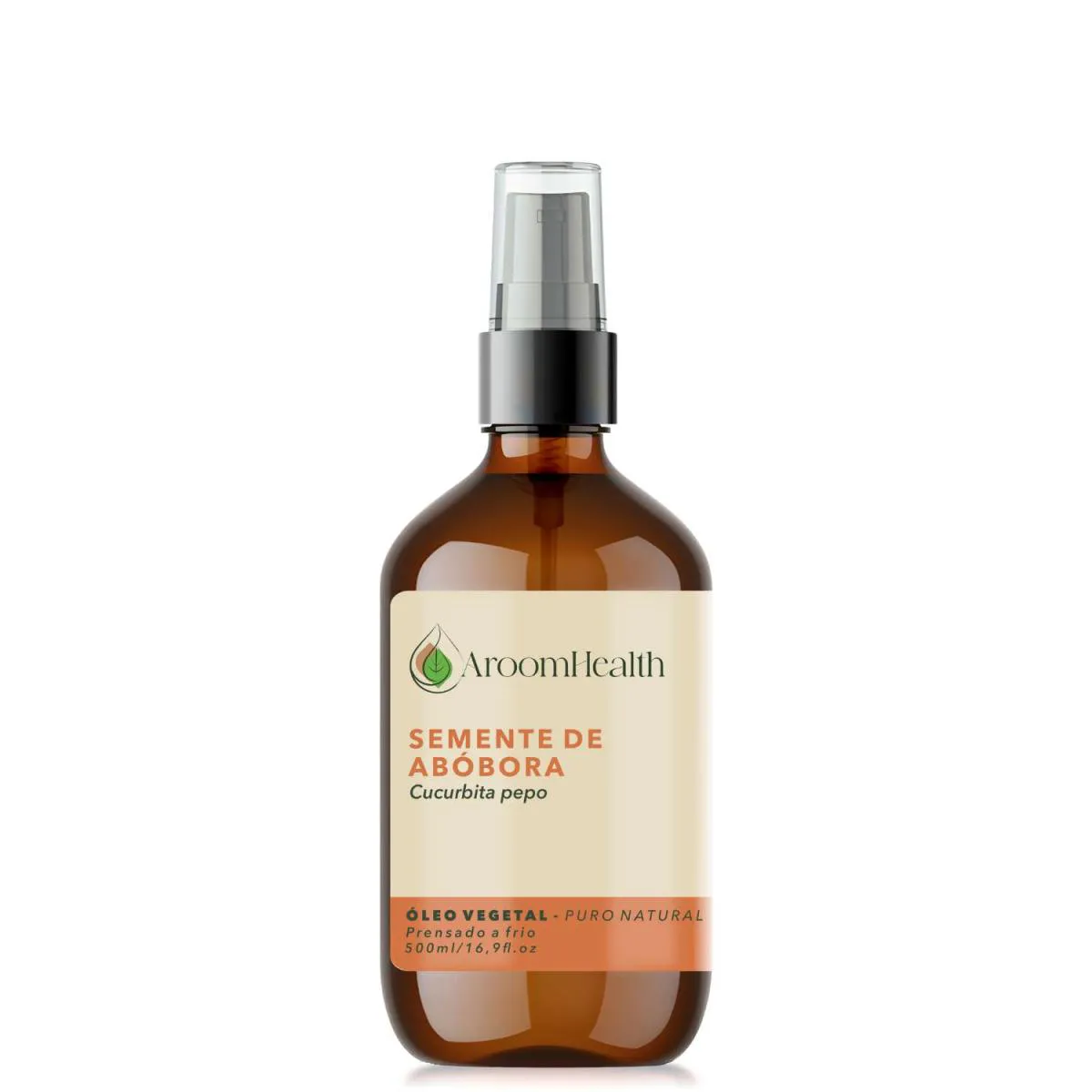 Óleo vegetal puro natural de semente de Abóbora - 500ml AroomHealth Nome botânico: Curcubita pepoOrigem: BrasilExtração: Prensagem a frio Produto vegano – Não testado em animaisVidro âmbar com válvula pump dosadora, validade de 2 anos (verifique no rótulo). Óleos vegetais são gorduras extraídas das plantas, desodorizado e seu aroma é semelhando a de um óleo comum.