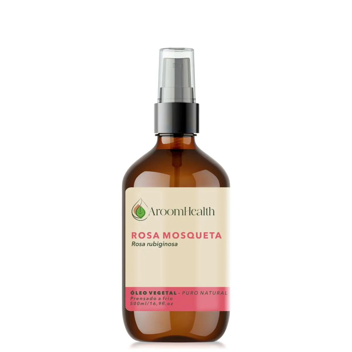 Óleo vegetal puro natural de Rosa mosqueta rubiginosa - 500ml AroomHealth Nome botânico: Rosa rubiginosaOrigem: ChileExtração: Prensagem a frio Produto vegano – Não testado em animaisVidro âmbar com válvula pump dosadora, validade de 2 anos (verifique no rótulo). Óleos vegetais são gorduras extraídas das plantas, desodorizado e seu aroma é semelhando a de um óleo comum.