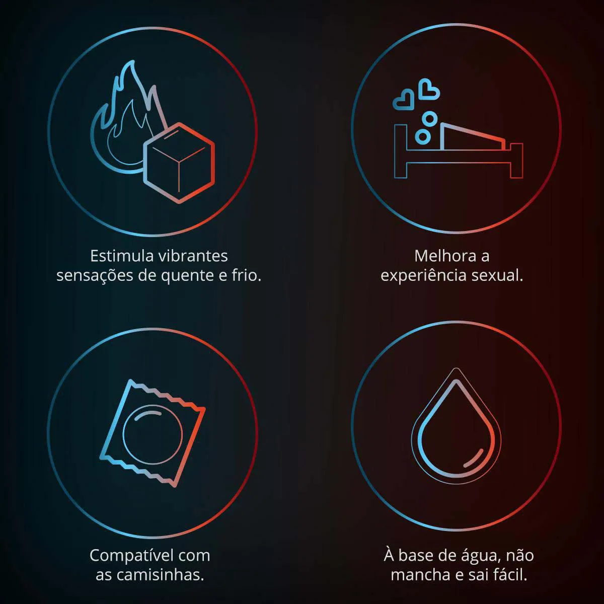 Indicado para quem busca novas experiências, o Olla Sensations aumenta a lubrificação íntima e estimula sensações de quente e frio, proporcionando prazer mútuo durante a relação.