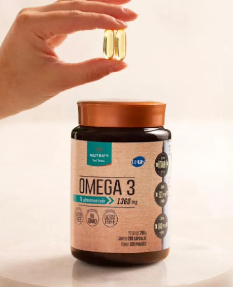 Alta concentração para expandir benefícios O Ômega 3 Nutrify é essencial para quem busca saúde e bem-estar em todos os momentos! Este poderoso ácido graxo, que o corpo não produz sozinho, é indispensável para o coração, o cérebro e a visão. Rico em qualidade e praticidade, ele oferece os benefícios encontrados em peixes de águas frias, sementes e nozes, garantindo o suporte ideal para a sua saúde. Cuide de você com o melhor do Ômega 3!- O que são Triglicerídeos (TG)? Quando o ômega-3 está na forma de triglicerídeos (TG), ou seja, na mesma forma em que é encontrado na natureza, torna-se mais fácil para o organismo reconhecê-lo e utilizá-lo. Isso otimiza seu aproveitamento e benefícios para a saúde.