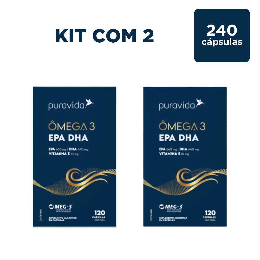 O que é e para que serve o Ômega 3 Epa 660Mg Dha 440Mg vitamina e 10Mg Kit 2 - 120 Caps - Puravida?