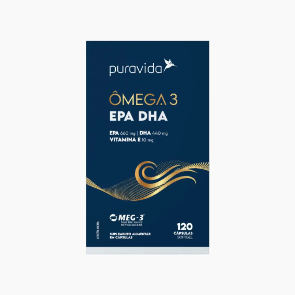 O Ômega 3 EPA DHA Puravida é um suplemento alimentar elaborado com óleo de peixe de alta pureza, combinado com vitamina E, desenvolvido para contribuir com funções importantes do organismo. Apresentado em um kit com 120 cápsulas, possui selo de qualidade MEG-3® que garante sua procedência sustentável e ausência de impurezas.