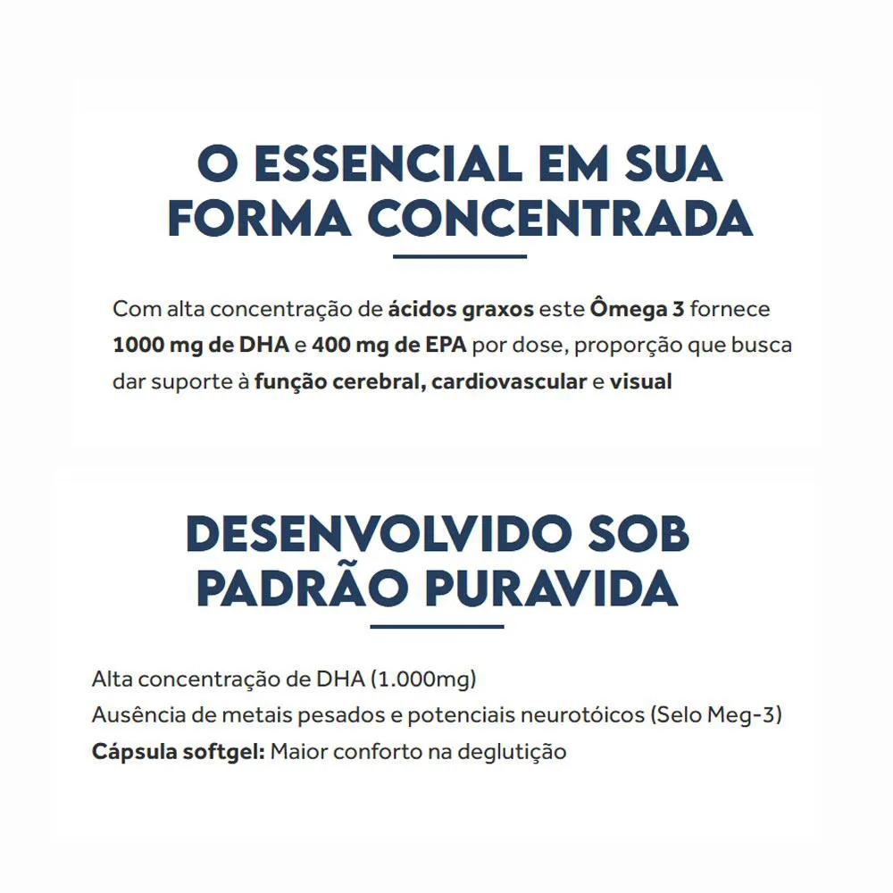 Ômega 3 Super DHA EPA Big - 120 Cápsulas - Puravida O Ômega 3 Super DHA EPA Big da Puravida é um suplemento alimentar à base de óleo de peixe de alta pureza, formulado para complementar a ingestão diária de ácidos graxos essenciais DHA (ácido docosa-hexaenoico) e EPA (ácido eicosapentaenoico). Produzido com rigorosos padrões de qualidade, passa por processos avançados de purificação que auxiliam na remoção de metais pesados, garantindo um produto seguro e confiável para o consumo diário. Principais Características: - Suplemento alimentar de Ômega 3 (DHA + EPA) - Cápsulas em tamanho Big, práticas para o consumo - Produzido a partir de óleo de peixe purificado - Alta concentração de ácidos graxos essenciais - Livre de glúten - Marca reconhecida por seus padrões de qualidade: Puravida Composição: - Óleo de peixe (fonte de DHA e EPA), cápsula de gelatina, umectante glicerina e água purificada. Modo de Uso: - Ingerir conforme recomendação do fabricante. Conteúdo da Embalagem: - 1 Frasco contendo 120 cápsulas Informações Importantes: - Produto indicado para adultos - Não contém glúten - Suplemento alimentar, não é medicamento - Não exceder a recomendação diária de consumo indicada na embalagem - Gestantes, nutrizes e pessoas que fazem uso de medicamentos devem consultar um profissional de saúde antes do consumo Armazenamento: - Conservar em local fresco, seco e ao abrigo da luz. Após aberto, manter a embalagem bem fechada. SOBRE A LOJA: Somos a rede de farmácias mais antiga de São José dos Pinhais, atuando no ramo farmacêutico desde 1990 com comprometimento à qualidade e satisfação do cliente. É um prazer compartilhar os nossos valores e as nossas conquistas com quem confia no nosso trabalho! Imagens dos Produtos são Meramente Ilustrativas. Todas as Informações Divulgadas são de Responsabilidade Exclusiva do Fabricante/fornecedor.