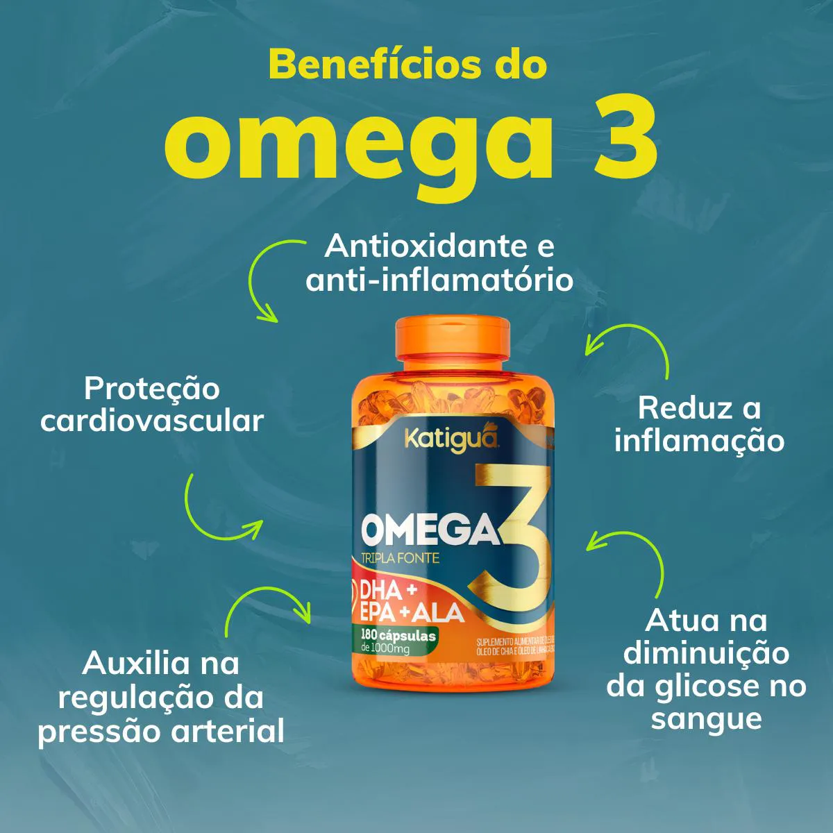 Suplemento alimentar com a mesma formulação de qualidade Katiguá, combinando óleos de peixe, linhaça e borragem para oferecer uma tripla fonte de ácidos graxos.Benefícios: