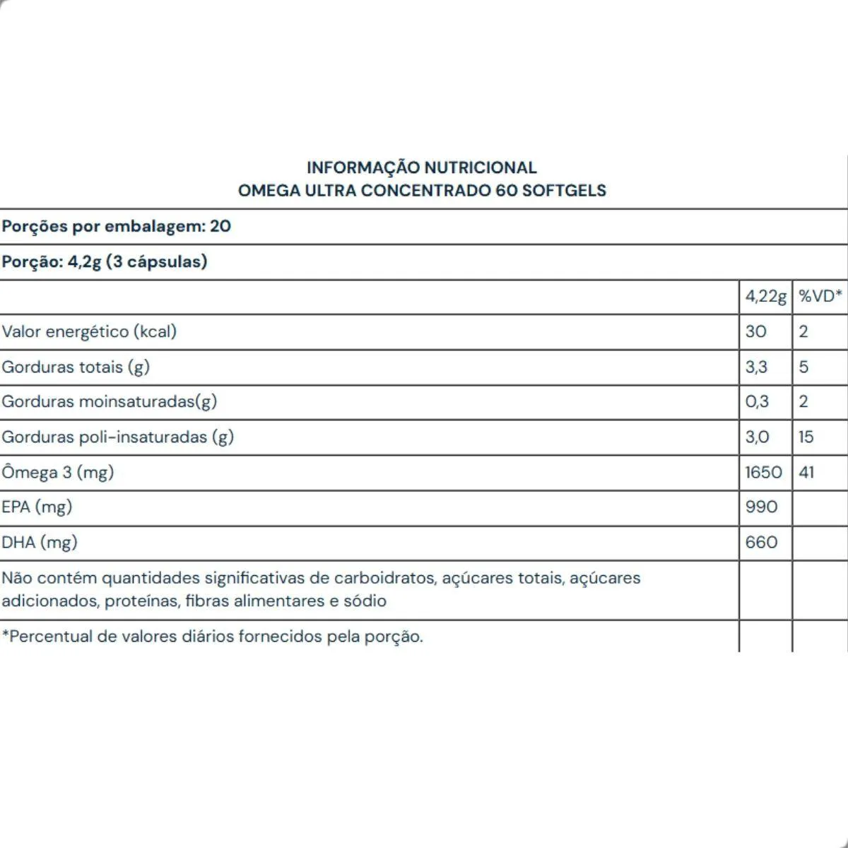 - Suporte nutricional com alta concentração de EPA (990mg) e DHA (660mg) em cada dose.