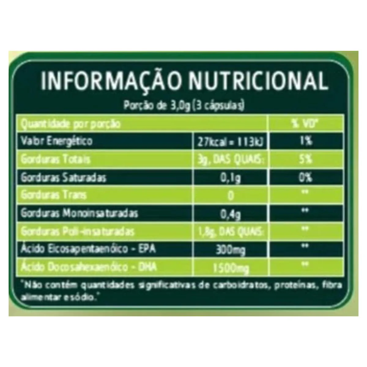 - Alta concentração de ácidos graxos EPA e DHA.