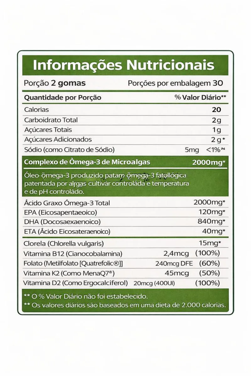 • Suplemento vegano de Ômega 3 em forma de gummies.