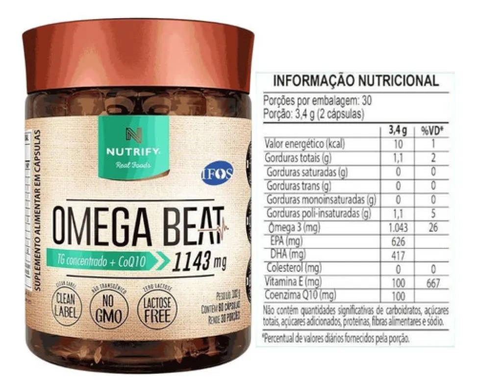 Omega Beat 60 Cáps Nutrify Omega 3 com Coenzima Q10 Coq10