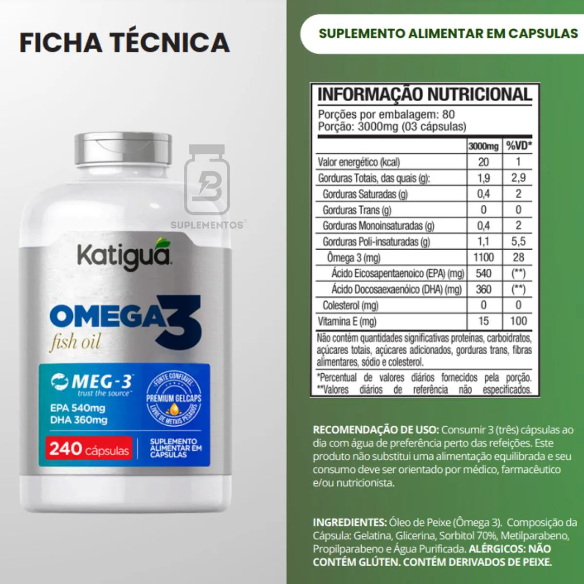 - Produzido com óleo MEG-3 de alta pureza;