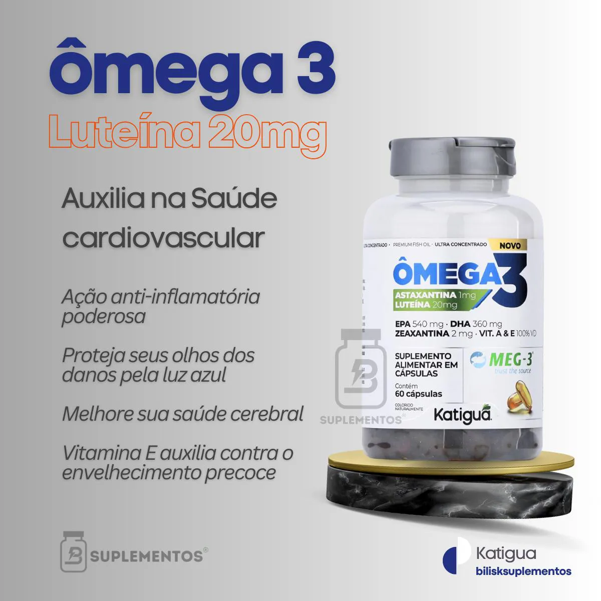 Omega3 Concentrado Meg3 Epa 540 Dha 360 Astaxantina + Luteina + Zeaxantina 60Caps Katigua