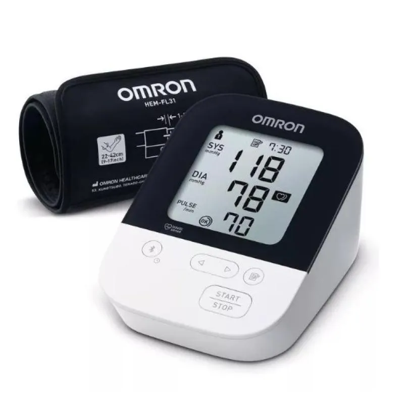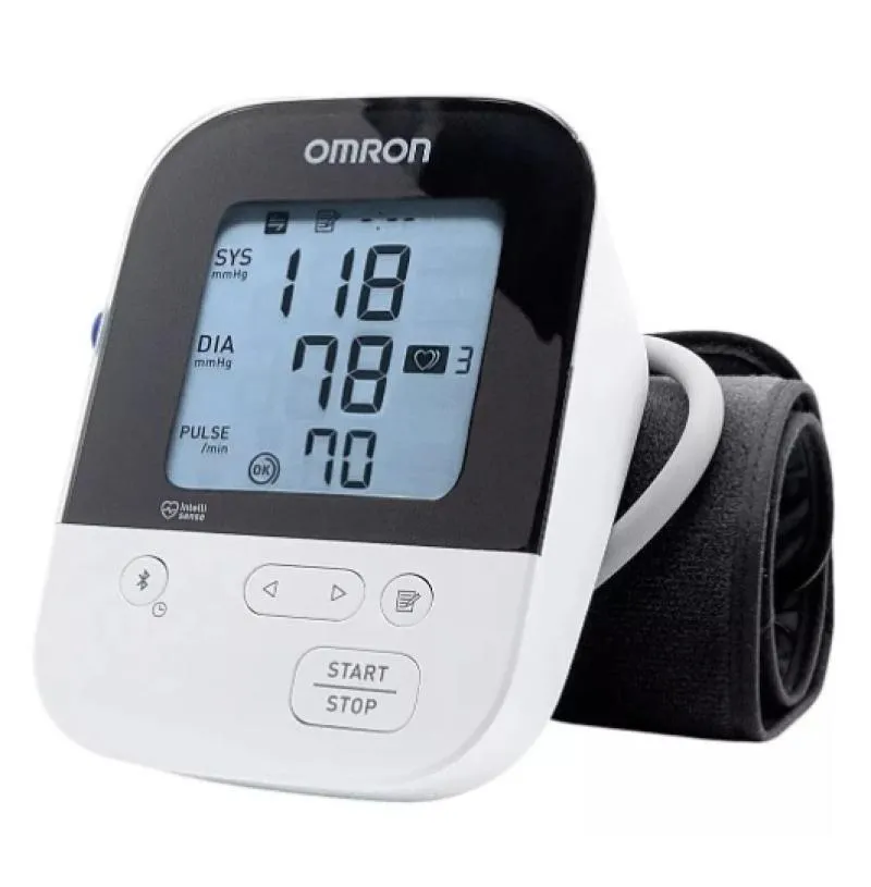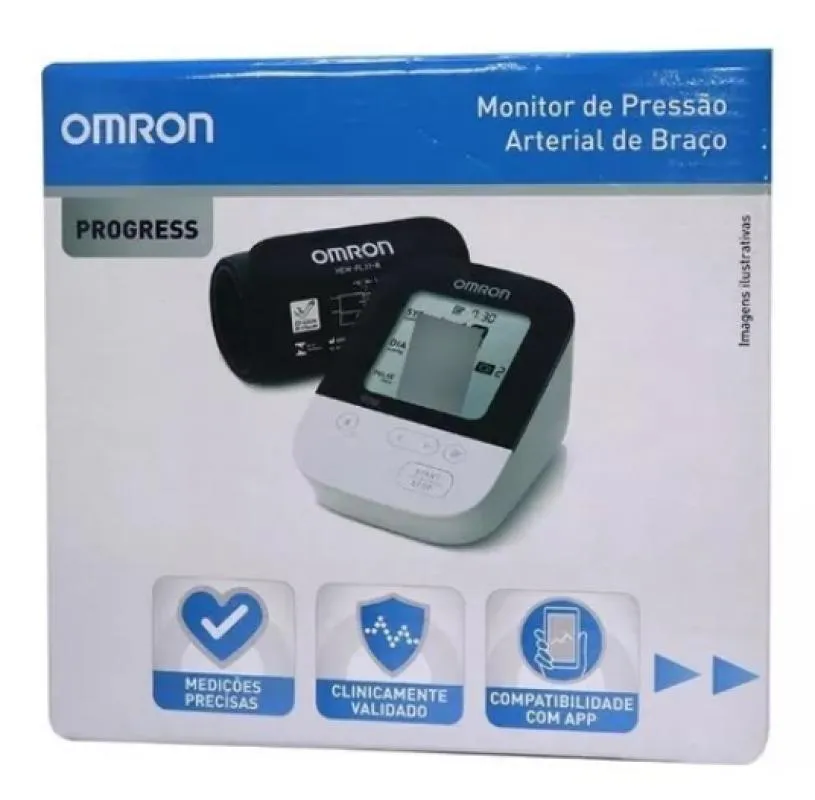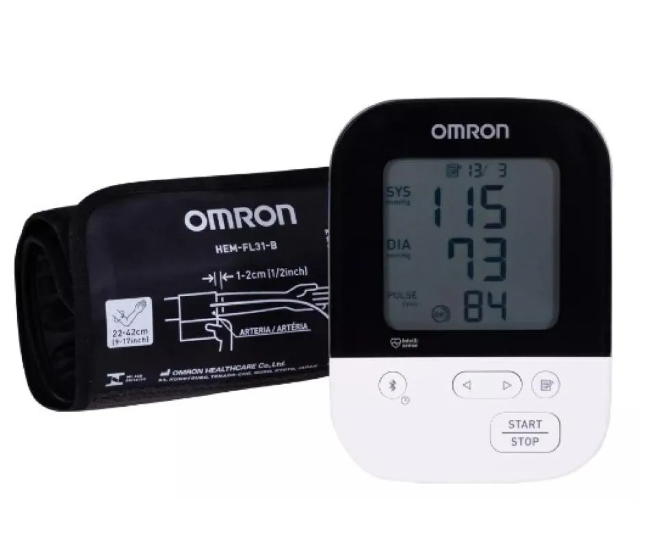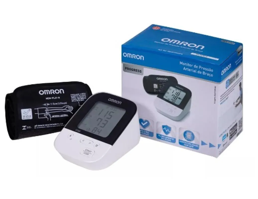Medidor De Pressão Arterial Braço HEM-7156T Omron com leituras precisas e facilidade de uso. Possui conexão Bluetooth e compatibilidade com o OMRON Connect App para armazenamento e compartilhamento de dados de medição. Intelli Wrap Braçadeira Inteligente, facilita a colocação e possui cobertura expandida, inflando ao redor de todo o braço para assegurar leituras acuradas. Inclui detector de batimentos cardíacos irregulares, de movimento corporal, valor médio das últimas leituras, indicador de pressão arterial elevada, guia de aplicação da braçadeira e memória para 60 registros.