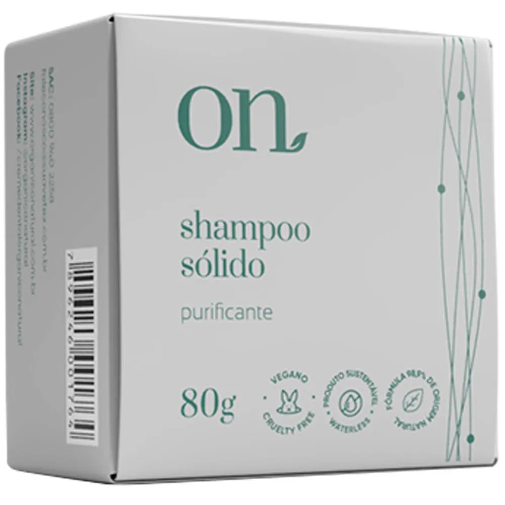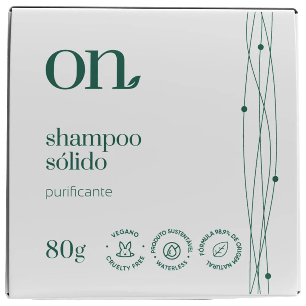 O shampoo sólido purificante ON possui em sua formulação manteiga de cupuaçu, óleo de girassol, extrato de alecrim e extrato de sálvia. Pode ser usado todos os dias. Indicado para cabelos mistos a oleosos.