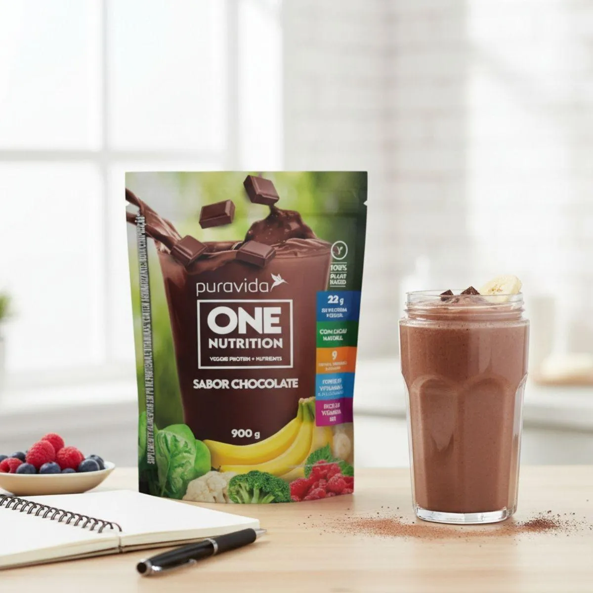 A fórmula reúne proteínas de fonte vegetal ao lado de ingredientes verdes selecionados, compondo um perfil que se encaixa em dietas variadas. O pote de 900g oferece volume suficiente para planejamentos estendidos, ajudando a manter regularidade no consumo. A marca preserva seu padrão de transparência na apresentação, descrevendo os componentes de maneira clara e apoiando decisões conscientes para quem busca equilíbrio nutricional sem complicações. A união de elementos vegetais cria um conjunto coerente com a proposta da linha vegan da Pura Vida.