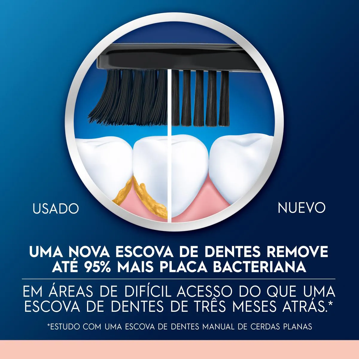 A Iconic Premium Oral-B é uma escova de dente que possui uma cabeça compacta com cerdas em forma de X desenvolvidas especialmente para alcançar as áreas mais difíceis entre os dentes.